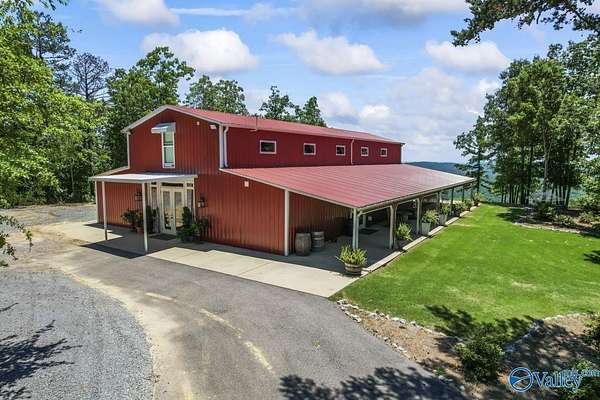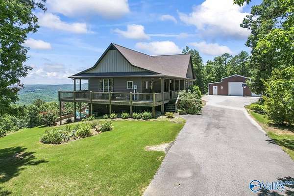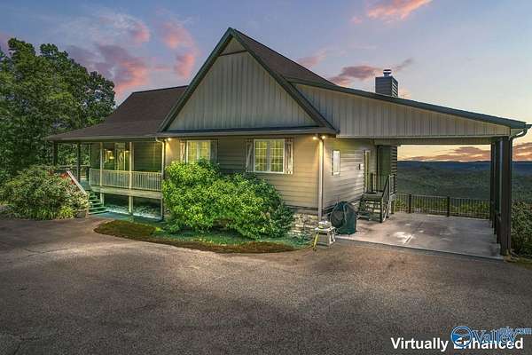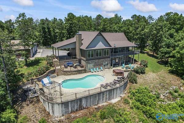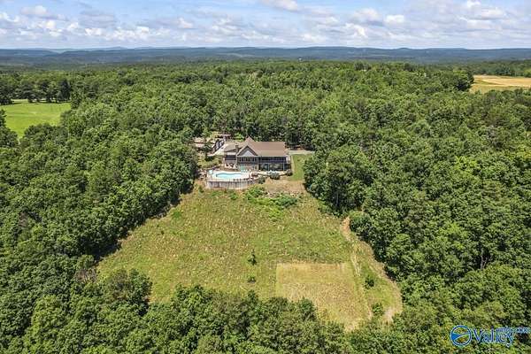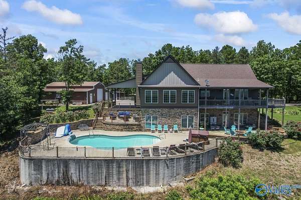 Come see this beautiful home on 28.5+/- AC. Situated on a bluff with spectacular views! This property has a gated entrance will lead you to the cabin sitting on the edge of pure beauty. This lodge type home has 3 BR & 3 BA with an open concept living area, with vaulted ceiling and a cozy wood burning fire place. Enjoy nature w/large windows, decks, and patios to admire the stunning views of the mountains, pool, hot tub, firepit & green field. Everyone in the family will love the downstairs room, a perfect man cave. Several areas to entertain and enjoy the scenery. The second building near the cabin is a barn/workshop (heated/cooled area) which holds all equipment needed. 6000' event center.