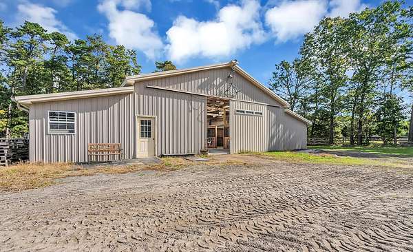 Big beautiful horse ranch that has great potential. Maybe for a trail ride business? Direct access to Wharton State Forest trails from the back of the barn.
