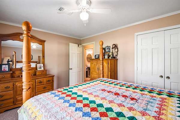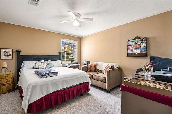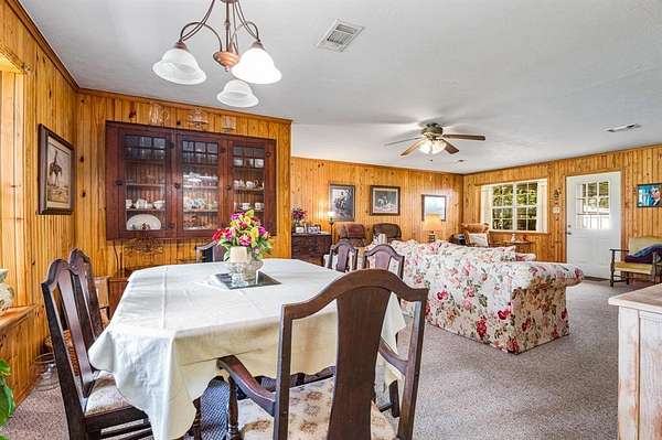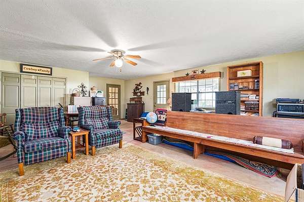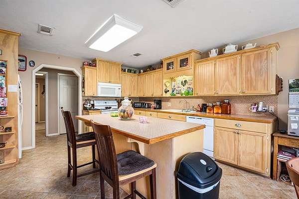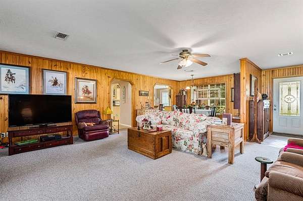 Experience the best of both worlds with 19.9 cross-fenced acres featuring mature trees and a stock tank, located just minutes from town in a quiet country setting. This 2,994 sq. ft. home offers a spacious and functional layout, including a large eat-in kitchen with an island and ample storage, a combined living and dining area, and a large den.