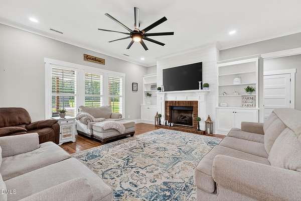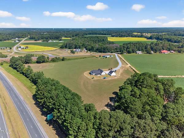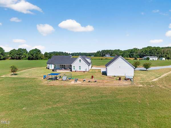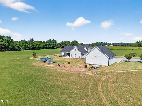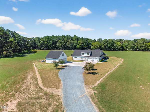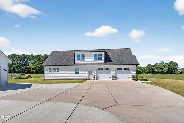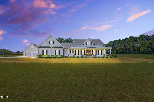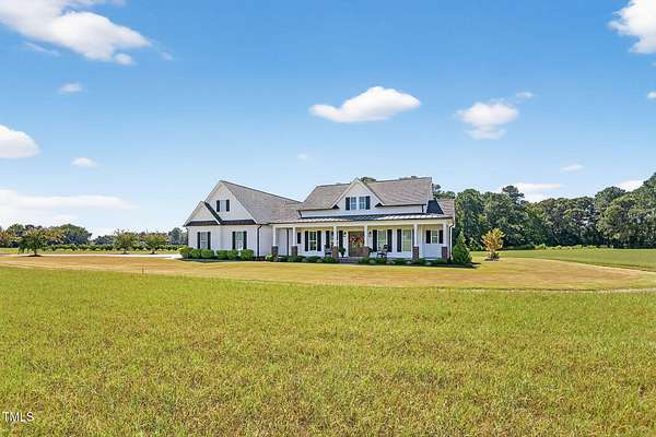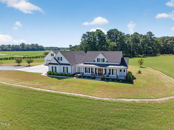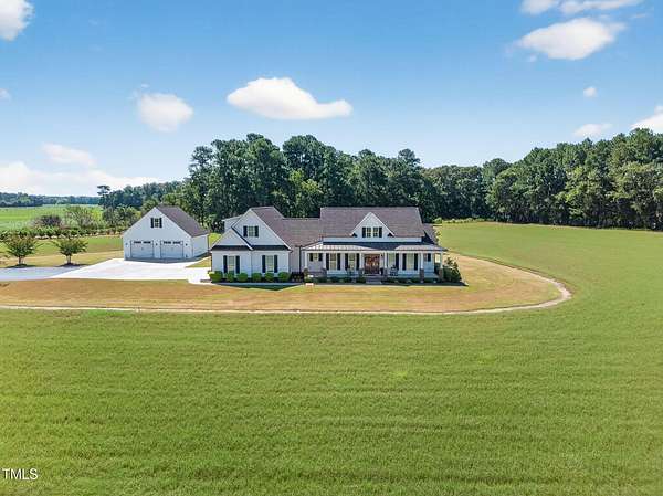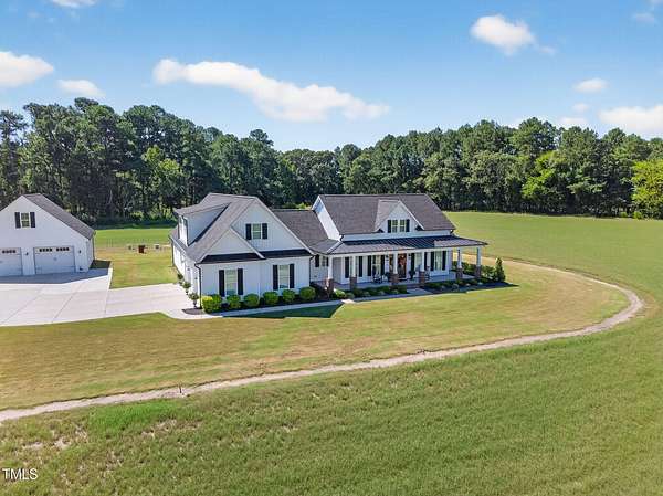 Charming Farmhouse Retreat on 12+ Acres - Ideal Location Between Raleigh & Fayetteville! Welcome to this beautiful farmhouse-style home, built in 2020 and loaded with upgrades, perfectly set on over 12 acres of private countryside. Offering the best of rural tranquility with modern comforts, this 3-bedroom, 3.5-bath home is an exceptional find. Inside, you'll find an open-concept layout with stylish finishes, a gorgeous dining area and a spacious kitchen with upgraded appliances, farmhouse sink, oversized kitchen island, and generous living spaces perfect for entertaining or relaxing. Each spacious bedroom features the adjoining bath, a walk-in closet. Primary bedroom suite includes dual vanity, walk in closet, Walk-in shower. Step outside to enjoy the back porch and wide open spaces, peaceful views, and a detached garage offering ample storage and a workshop. Whether you're looking to garden, raise animals, need horse pasture, or simply enjoy the land and recreation vehicle fun, this property is ready for your vision. Conveniently located between Raleigh and Fayetteville, with easy access to I-40 and I-95, you can enjoy country living without giving up accessibility. It's not only a beautiful property, it's a charming country home and land for your outdoor lifestyle needs.
