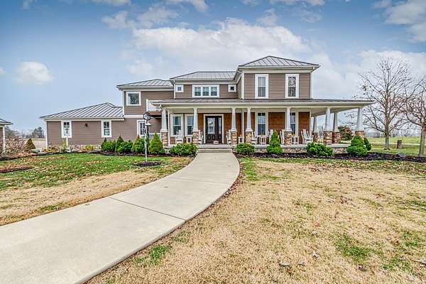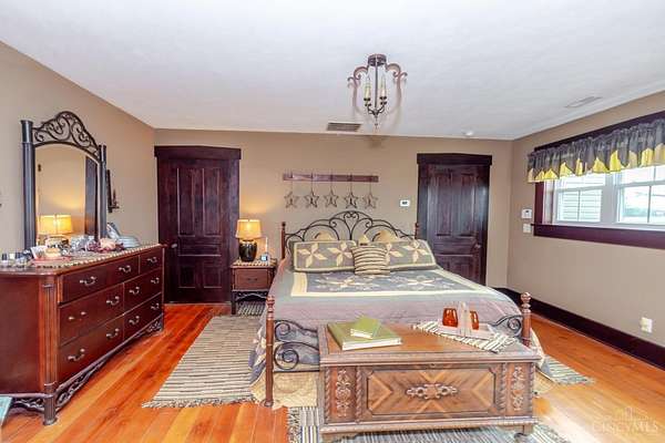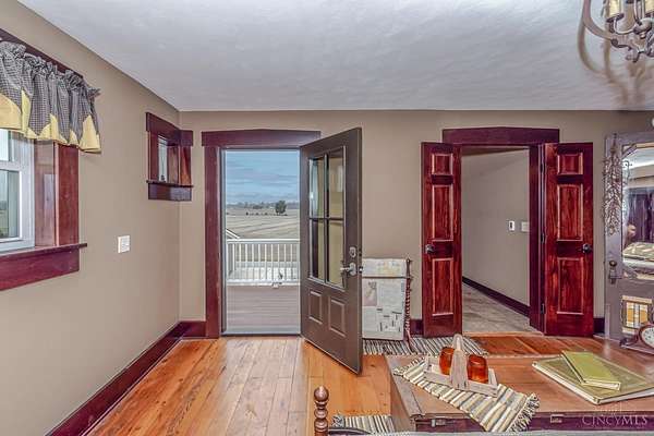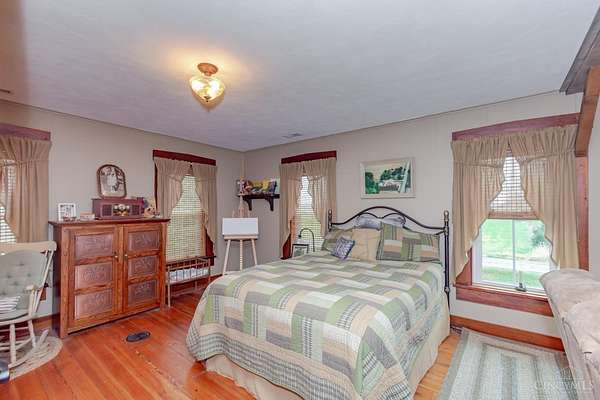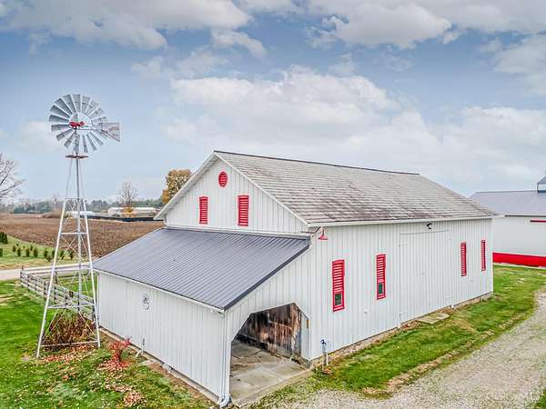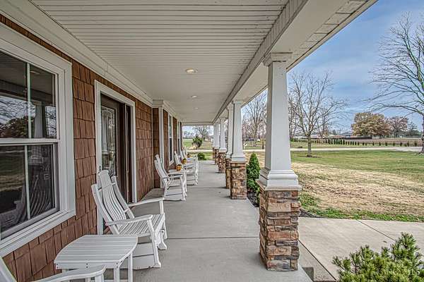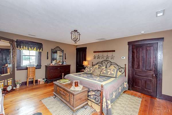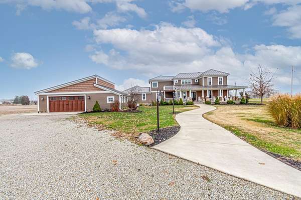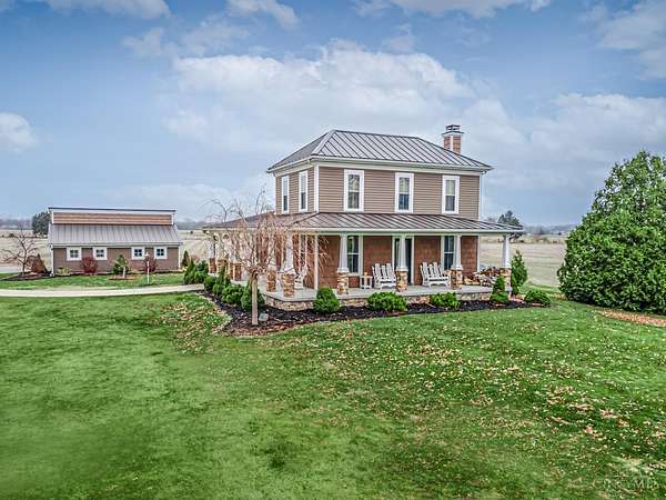 Set on 21.1 acres across 2 lots, this 1860 farmhouse flawlessly blends a 2016 remodel with vintage character, featuring wd flrs throughout, original trim, hardware & charming built-ins. The wraparound porch leads into a spacious LR w/stone hearth & WBFP, flowing to a custom Kitchen w/granite counters, island w/counter bar, Jenn-Air appliances, dbl oven & original cabinetry, plus a sun-filled Breakfast Room. The DR addition boasts a beadboard ceiling & sweeping field views. Main level also includes a lrg laundry rm/mud rm off the att 2-car grg & full ba. Upstairs, 2 bdrms were combined into a generous rm w/sitting area(original doors are intact so could easily replace the wall for a 3rd bdrm), the primary bdrm offers an ensuite w/soaking tub, tile shower, dbl vanity & WIC. Outside: in-ground heated saltwater cocktail pool, 4888 barn w/concrete flrs, 1881 barn w/original floors & slate roof, another barn & det 2-car garage w/finished rec room. Home has city water, barns have well water