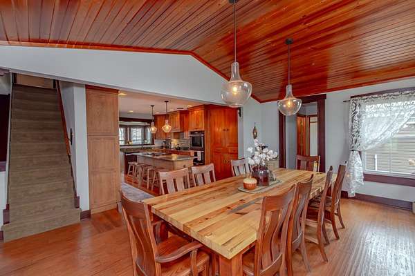- Cathedral Ceiling, Crown Molding, Natural Woodwork