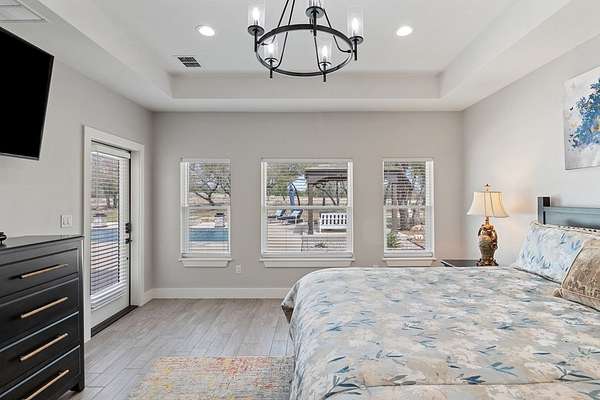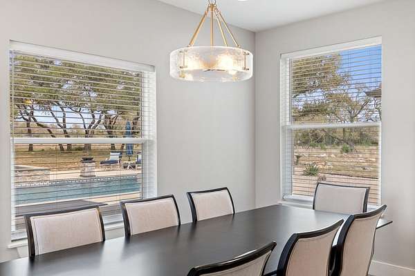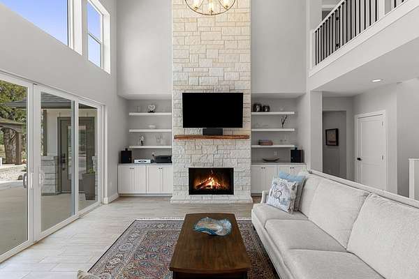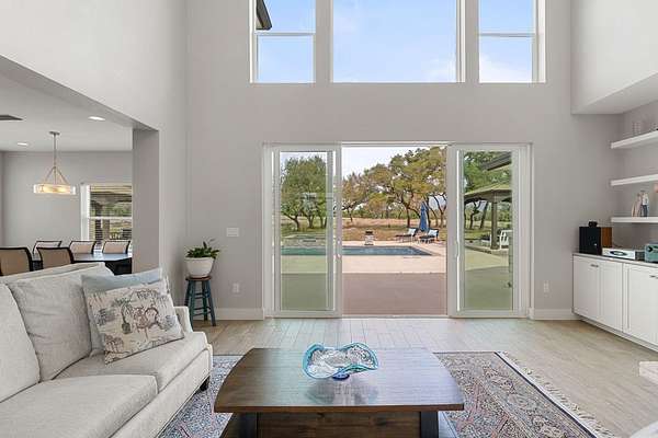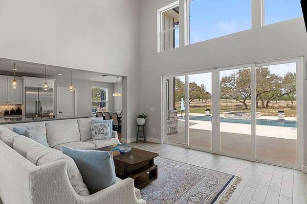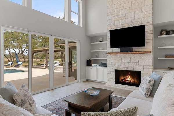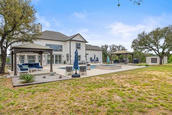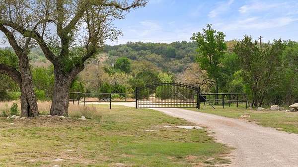 Welcome to Texas Hill Country living at it's best in Johnson City! This exquisite 4376 sf home sits nestled on 10 secluded acres just one hour from Austin and San Antonio and only 30 minutes to Fredericksburg and 20 minutes to Dripping Springs! This ranchette is fully fenced and gated, surrounded by beautiful oak trees and abundant wildlife. When entering the home, you are greeted by a 20' tall foyer and living area with a stone fireplace that can be used with wood or propane. The kitchen has quartzite countertops and marble backsplash, with Thermador appliances. The home features custom cabinetry, tile floors, marble showers, champagne bronze fixtures and Bali wood blinds. All kitchen appliances convey as well as an additional refrigerator in the butler's pantry. There are 4 bedrooms and 3.5 bathrooms with a separate office and an enormous upstairs entertainment/media room with a wet bar and additional storage. When you step outside to the patio area, you are greeted by a 15'x35' pool with sundeck and a hot tub spa, two relaxing cabana areas to enjoy quietly or with family and guests! The home has a backup generator with auto start and wi-fi capabilities, a maintenance contract is included. There is a 1,000-gallon propane tank that holds enough fuel to run the generator for a month and a 2,500-gallon water holding tank. The shed and greenhouse are both insulated and wired for electricity. This luxury property offers tranquility as well as ample space and accommodations for the ultimate in entertaining. The sellers are in the process of establishing honey bees on the property, and after one more year will offer an Ag exemption for lower taxes! Redundant internet service is available. There is a $30 per year mandatory POA fee, and a $170 per lot voluntary fee for road maintenance. Do not miss this one!