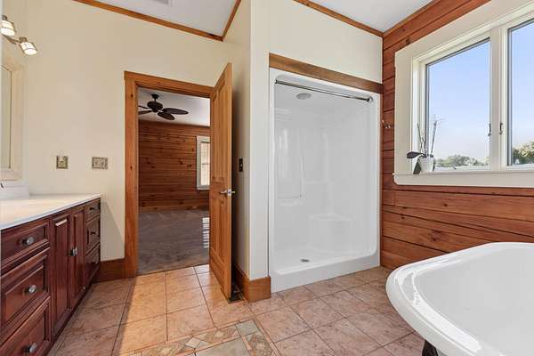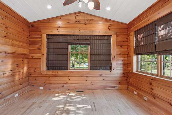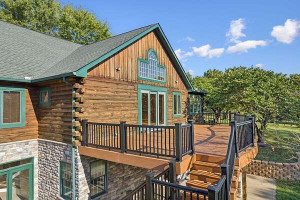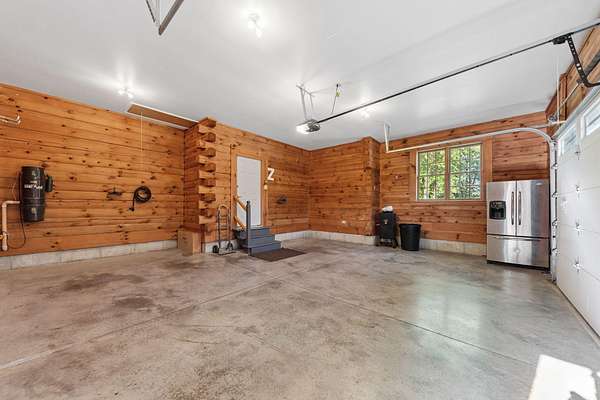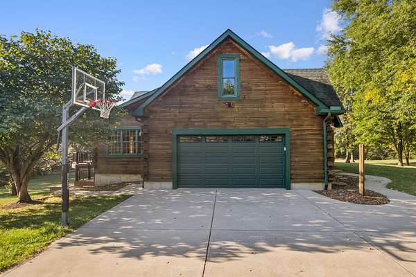 Welcome to this One-of-a-kind Custom Ranch Log Home on 2.82 Acres. Enter the serene setting via the long tree lined driveway (140 yards) which leads you to a welcoming stamped concrete front porch, setting the tone for the beauty within. Inside, oversized windows and vaulted ceilings flood the open-concept great room and kitchen with natural light while framing peaceful views. A floor-to-ceiling stone gas fireplace anchors the space, creating the perfect gathering spot. Truly one floor living if desired with a first floor primary suite with soaking tub and walk-in shower, first-floor laundry, and a flexible office/4th bedroom option and oversized 2 car garage. The walkout lower level adds two bedrooms, a full bath, a large family room, and access to both a covered patio and a third garage. Also, tons of storage and a workshop space provides plenty of room for hobbies or tools. Enjoy the outdoors from the expansive deck overlooking the property or the lower-level patio. Large flat yard would easily accommodate a pool. If you're looking for a private tranquil setting yet not too far from the city, this is your answer! This home is also available for sale with an additional 10.5+ acres. Please see MLS# 638376