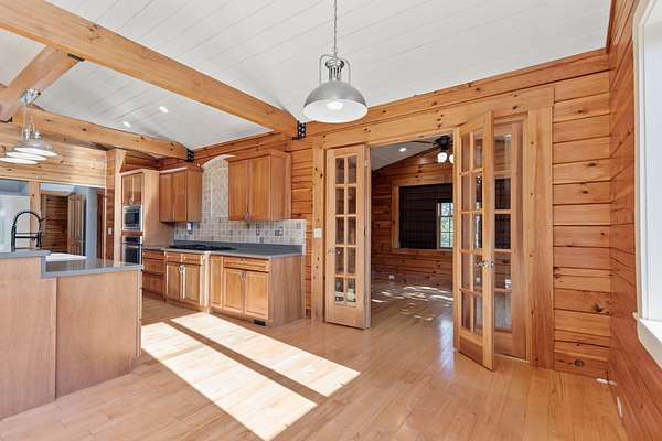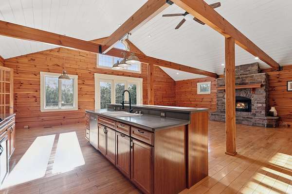 - Attic Storage, Beamed Ceilings, Built-In Features, Cathedral Ceiling(s), Ceiling Fan(s), Central Vacuum, Eat-In Kitchen, Entrance Foyer, Kitchen Island, Multi Panel Doors, Natural Woodwork, Open Floorplan, Pantry, Recessed Lighting, Smart Thermostat, Vaulted Ceiling(s), Walk-In Closet(s)