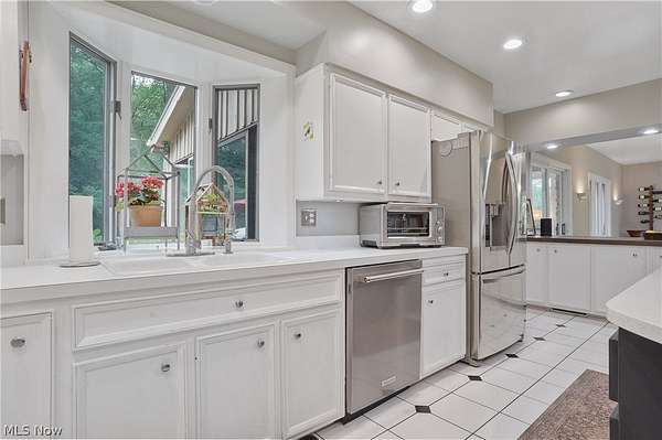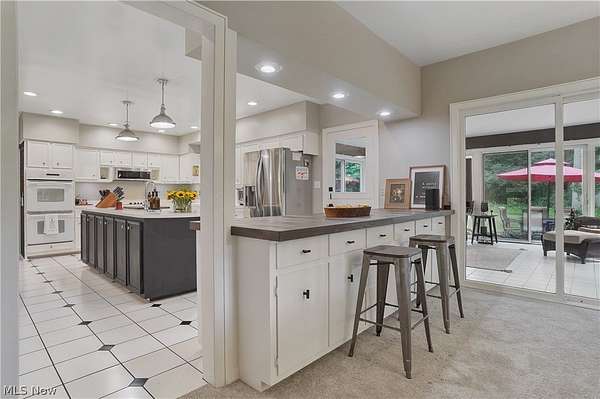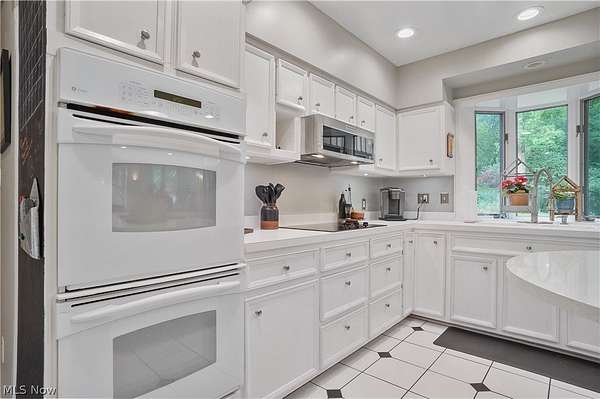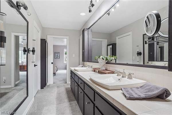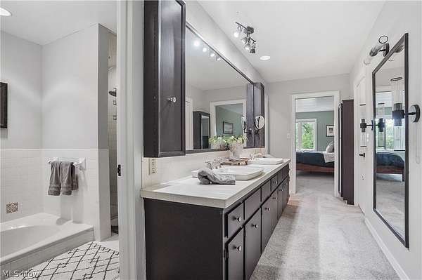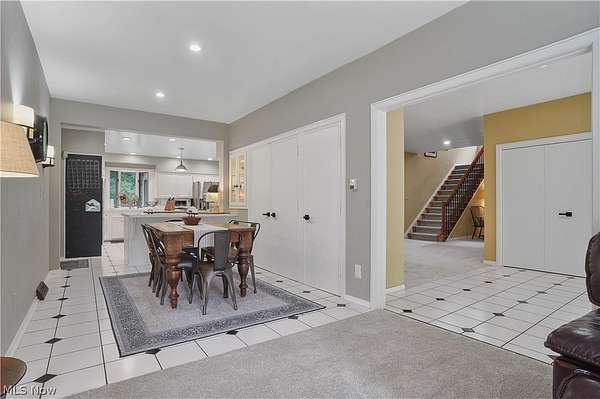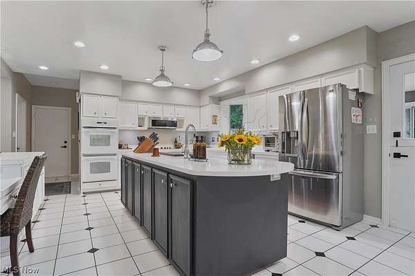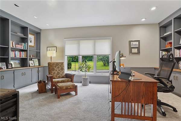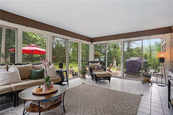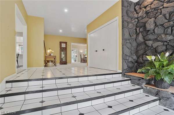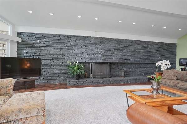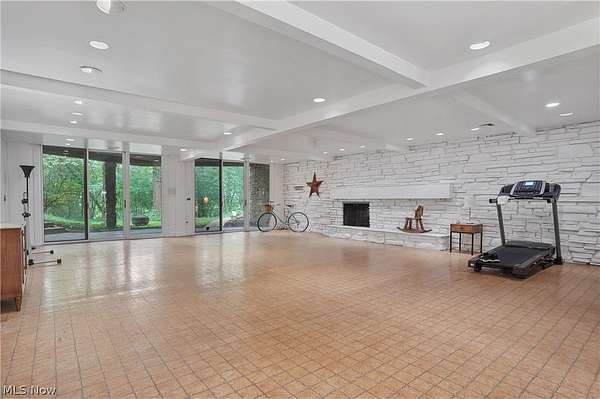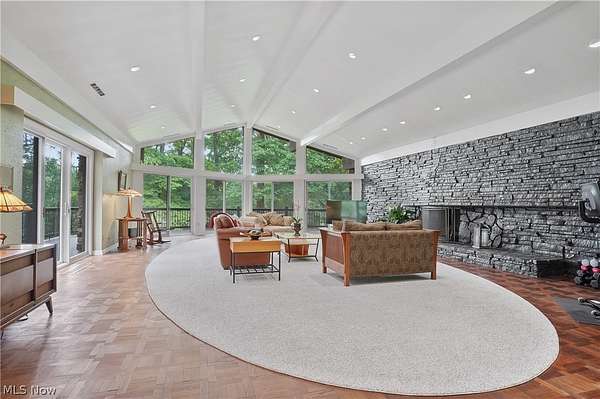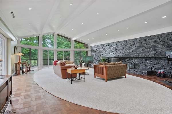 Welcome to 889 Eaton Ave., a Marchetta built stone and cedar contemporary home offering over 5,600 Sq. Ft. plus approximately 1,110 in the walk out lower level. Step inside the front door to the open foyer and your eyes will immediately see the wonderful open floor plan. To the left you'll enter the living room with fireplace that mergers into the eating area on your way into the white and bright, fully applianced kitchen with center island, breakfast bar and plenty of cabinets and storage. The kitchen connects to the spacious formal dining room and the wonderful Sun room overlooking the multi level patios, newer Trex decking and the large open back yard with plenty of trees. The main Great room is UhMazing! This room is about 41x25 with 14 Ft. high ceilings, great lighting, and a huge stone wall with fireplace PERFECT for entertaining and large family gatherings.. There is also a first floor office with walls of built-ins and 2 half baths. The 2nd floor includes 5 bedrooms with ensuite bathrooms and great closet space in each as well as the hallway that is filled with storage closets. Some recent improvements: New roof in 2021, new Furnace, Decking 2023, new carpet throughout in 2024, EV charger added, invisible fencing, Updated lighting: garage, laundry room, kitchen, office and outdoor lighting in the back, new microwave and cooktop and front landscaping in 2020. This location is ideal and close to downtown, the metro park area, Stan Hywet, Portage CC and great shopping and restaurants. Home is in the King school cluster