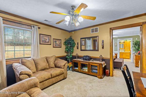 PROFESSIONAL PICS COMING 2/26/26. One-owner ranch home built in 1977, where pride of ownership is evident throughout. This property has been meticulously maintained and thoughtfully expanded with additions in the 1980s, early 2000s, and again in 2012. The result is a spacious 2,340-square-foot ranch offering 4 bedrooms, 3.5 baths, and a partially finished walk-up basement, all situated on 5 beautiful acres. The interior features an open floor plan with a welcoming living room, family room, dining area, and a stunning updated kitchen. One addition includes a mudroom/laundry room with an adjoining full bath, conveniently accessible from both the Deck and Dining area. Down the hallway are four bedrooms and a full guest bath. One bedroom, currently used as a flex space, includes a half bath and provides access to the primary suite, making it ideal for a home office or sitting room. The primary bedroom offers two oversized walk-in closets and a full bath with a handicap-accessible shower. The attached 30 x 30 garage features excellent lighting and ample space for vehicles and storage. Additional exterior amenities include a 24 x 51 metal detached garage, a 12 x 20 storage shed, and a 10 x 16 covered deck-perfect for enjoying the peaceful setting. This is a property that truly must be seen to appreciate the care and attention it has received over the past 49 years. Showings will begin 8am. Friday, 2/27/26.
