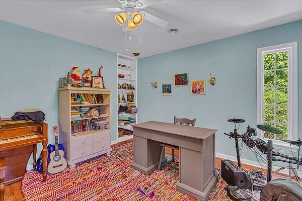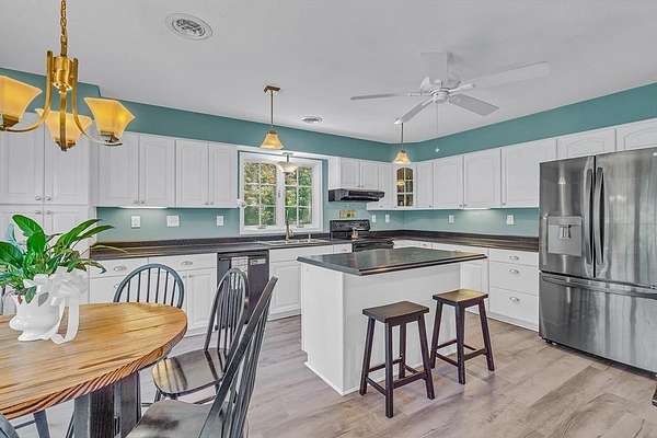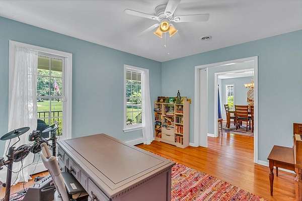 Priced below appraised value! Welcome to Taylors Creek located in the sought after neighborhood of Weems. This private 3+ acre lot offers a peaceful setting with mature trees, partial clearing, and exceptional privacy -- all just minutes from boat ramps, marinas, restaurants, shopping, and more. A welcoming front porch sets the tone for relaxation as you enter the home. Inside, you'll find a spacious living room with fireplace and direct access to the back deck, perfect for indoor-outdoor entertaining. The large kitchen features ample cabinetry, a center island, and an adjoining dining area. Just off the kitchen is a formal dining room, ideal for gatherings or everyday meals. A versatile main-floor bonus room makes a great office, hobby space, or playroom. The main-level primary suite includes a private recently updated bath for your comfort and convenience. Upstairs, you'll find three additional bedrooms and a full bath, offering plenty of space for family or guests. The attached two-car garage provides excellent storage. Work from home, Breezeline is available. Book your tour today and discover the charm of Taylors Creek living!