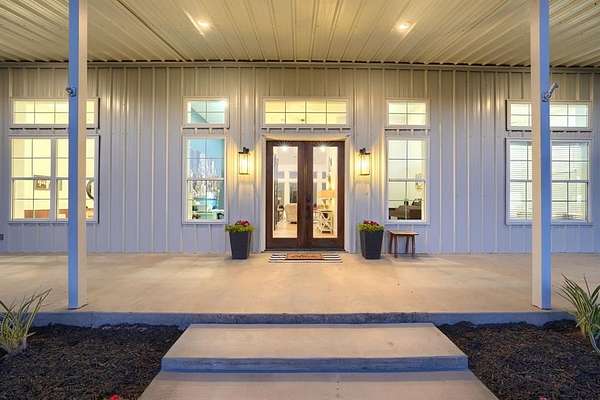 - Awning(s), Covered Patio/Porch, Lighting, Private Entrance, Rain Gutters