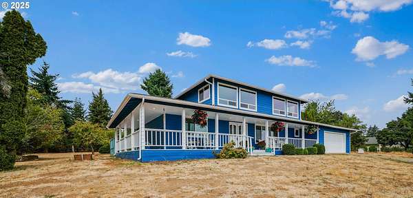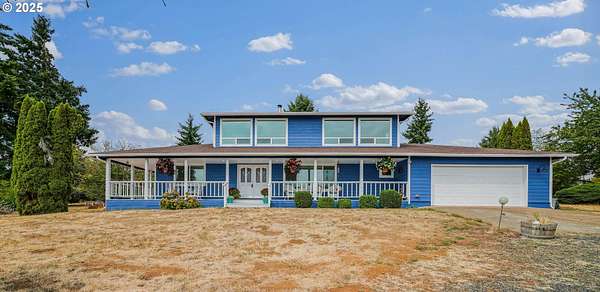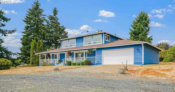 Est $4,199/moLooking for flat acerage and picturesque views from the Primary Bedroom? Look no further as this scenic home offers so all of that and more! Set on a flat 3 acres with mature landscaping all around. Inside you'll find updated solid surface flooring & carpets. The living room has both a wood burning FP & pellet stove. The kitchen is spacious and well maintained. Upstairs feat. potential 2nd LiV Rm, guest BRs, and a large Primary Suite w/ stunning views. Step outside a cov. patio, and privacy all around!
