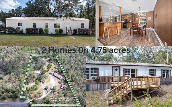 Est $1,893/mo2 homes on one lot!!! Have a large family? Then this is perfect to have your parents or adult children to live on same property. This property offers two homes on a gorgeous 4.75 acre lot with beautiful trees and on a cul-de-sac. The 2010 home is a 4/2 with 9' ceilings throughout and features a new metal roof, fireplace, large kitchen, glamour closet in master, built-ins everywhere, huge laundry/mud room, living room and family room. The second home is a 4/2 with lots of unique features, decks, and covered porch.