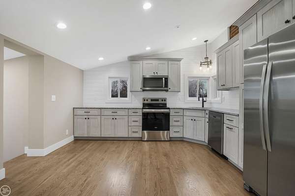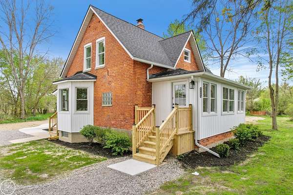 Ask how you can qualify for a 5.75% interest rate on this house! Country Paradise at a lower monthly payment. Escape to your own private retreat with 6+ acres of serene, wooded beauty--perfect for outdoor living, recreation, and year-round adventure. This beautifully updated split-level home blends farmhouse charm with modern finishes, offering comfort, style, and space for every need. Main Floor Comfort & Style. Step into a bright, welcoming foyer with refinished hardwood floors flowing through most of the main level. The brand-new kitchen features soft-close shaker cabinets with 42" uppers and crown molding, granite countertops, stainless steel appliances, and recessed lighting. A flexible room off the kitchen can serve as a formal dining area, home office, or playroom. Convenient first-floor laundry and a fully updated half bath add to the functionality. Private Owner's Suite The spacious primary bedroom offers a large walk-in closet, recessed lighting, ceiling fan, and a stunning new ensuite bath with a dual-sink granite vanity, relaxing clawfoot tub, and tiled shower with surround. Upstairs Retreat.; The second level features two generous bedrooms, a loft with new carpet, and a newly updated full bath with a dual-sink vanity, granite counter, and subway-tile shower with stone floor. Indoor-Outdoor Living. Enjoy the great room's abundant natural light, bay window, and open layout, or step outside to your new cement patio with outdoor fireplace--perfect for summer evenings under the stars. Extra Buildings for Work & Play. A large barn provides ample workshop space plus a finished bonus room for a home office, hobby space, or guest accommodations. Additional outbuildings are ready to store your outdoor gear, vehicles, or recreational toys. Move-in ready and set for your next adventure--welcome home to the best of country living. Other brand-new updates include: roof, roof sheathing, insulation, furnace and A/C, water heater, septic tank and field, updated electrical, updated plumbing, most windows replaced, vinyl siding, front and side entry stairs and decks. Large circular drive with new limestone.