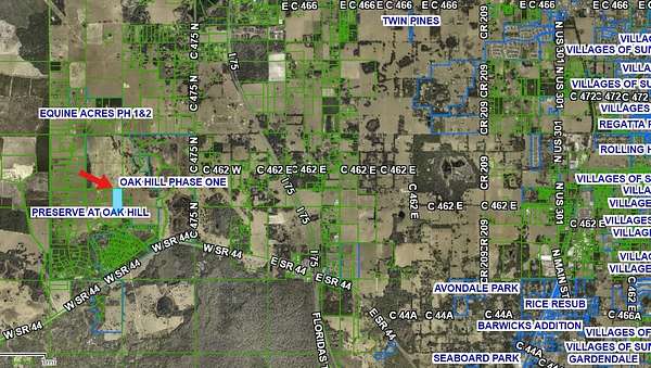 I75 to Wildwood exit then W on SR-44, right on CR 243, straight to The Preserve /Oak Hill gated entry.