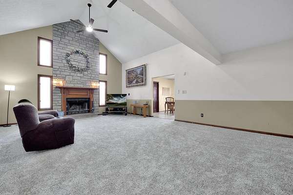 Welcome home to this beautiful corner lot surrounded by an abundance of mature trees, this one-of-a-kind custom built home is being offered for the very first time--a rare opportunity you won't want to miss. With 4 bedrooms, 2.5 baths, and 2,890 square feet of living space, there's room for everyone to spread out and enjoy. The main level features a desirable first-floor primary suite along with convenient first-floor laundry. The spacious Great room is anchored by a stunning log-burning fireplace that truly captures the space and creates a warm, inviting atmosphere. Upstairs, you'll find three generously sized bedrooms connected by a well-designed Jack-and-Jill bathroom, complete with individual sinks for added function and ease. The basement is a true showstopper, offering over 1,800 square feet of unfinished space with a walkout--providing endless potential for additional living space, entertaining, or customization to fit your needs. The home has seen some recent updates, while still offering the opportunity to make the kitchen and bathrooms your own with your personal style and finishes. A rare chance to own a custom home with space, character, and incredible potential--all set on over 5 acres with a stream on your beautiful lot.