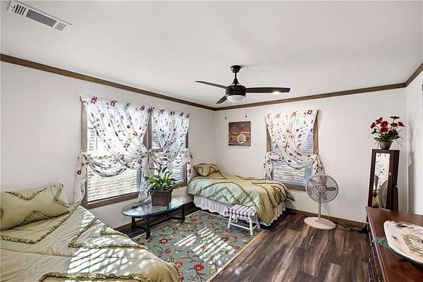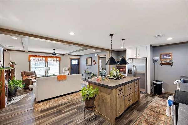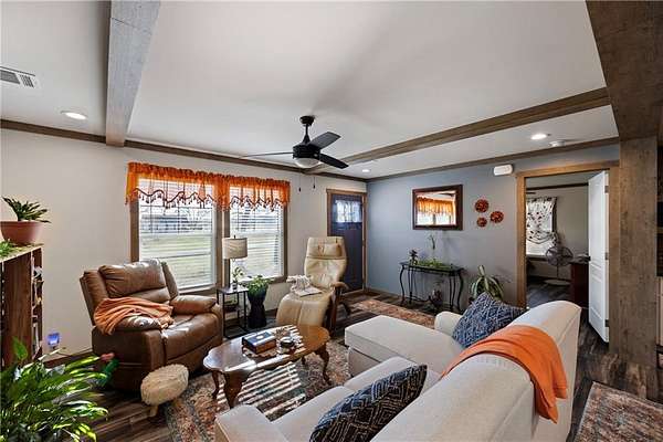 Unique opportunity featuring two manufactured homes on separate acreage offering flexibility for multi-generational living or potential investment use. The primary residence is a 2023 double wide manufactured home with 3 bedrooms and 2 bathrooms, featuring a modern farmhouse-style interior, spacious layout, and walk-in closets. The home also includes a backup generator and a detached storage building. This residence sits on approximately 1.46 acres.
