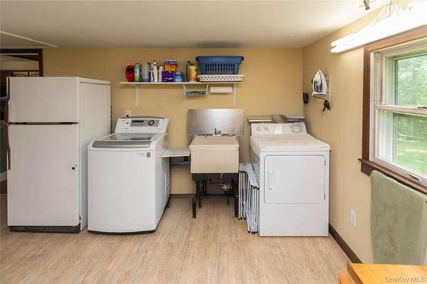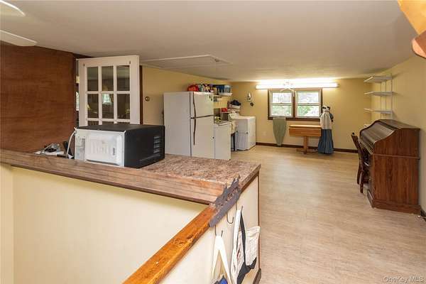 Deal fell through! Fully available again! This spacious and impeccably maintained oversized raised ranch offers comfort, flexibility, and pride of ownership in every room. With a thoughtfully designed layout, this home features two bedrooms on the lower level and a primary suite with a private bath on the main floor, along with an additional bedroom-ideal for guests, family, or a home office. The heart of the home is the expansive eat-in kitchen, complete with a cozy nook overlooking the front yard-perfect for morning coffee or breakfast with the kids. Just off the kitchen, you'll find a generously sized dining room with a bay window and a charming seating area that overlooks the peaceful backyard. An adjoining living room with a fireplace and wood stove insert creates a warm and inviting space, ideal for gatherings or quiet nights at home. Connected to the kitchen is a versatile bonus room, currently housing laundry appliances and perfect as a craft room, home office, or workshop, with a second stairway leading directly to the oversized two-car garage. The garage also features a third overhead door that opens to the backyard-a rare and incredibly convenient feature. Above the garage is an unfinished bonus space with endless potential-create your dream primary suite, home gym, or office. The walk-up attic is impressively spacious, clean, and even lined with area rugs for comfort and storage. There are two additional rooms perfect for both a indoor SHE SHED and specialty MAN SHOP! Efficient radiant ceiling heat provides consistent warmth without the need for bulky boilers or complicated systems. The wood stove and lower-level pellet stove add cozy charm and supplemental heat options. Step outside and enjoy your covered front porch for weekend relaxation, or entertain guests on the rear deck, perfect for evening cocktails or summer barbecues. Outdoor rustic firepit area as well to enjoy mother nature on cool summer evening or throughout the fall season. Located in a quiet and private neighborhood, just minutes from the Taconic State Parkway for easy commuting. Outdoor lovers will appreciate proximity to Taconic Hereford State Park, offering walking and biking trails, horseback riding, and snowmobiling. Updaters and betterments : The block foundation is insulated with poured foam pellets to keep the lower level extra warm . The doors are exterior locks are all keyed alike for convenience. Thermostats in most rooms to better control temperatures. Hot water heater is one year installed along with the water pressure tank. The fireplace has a stainless steel liner installed which reduces maintenance for chimney cleaning. All this within the desirable Arlington School District.