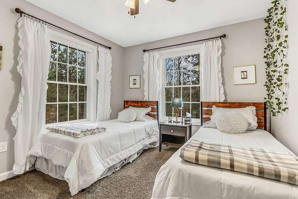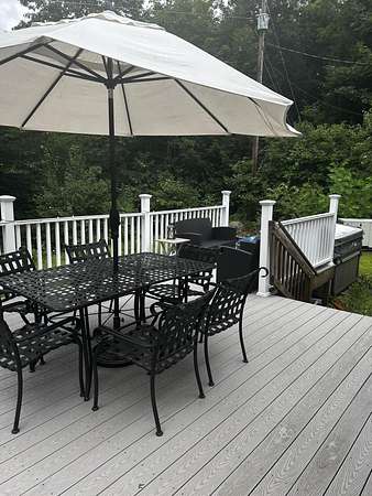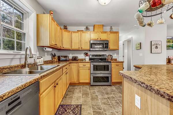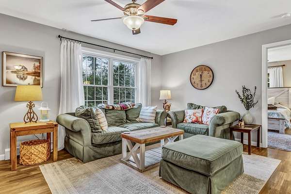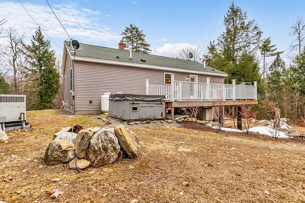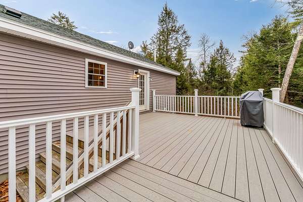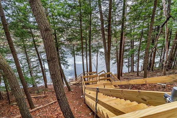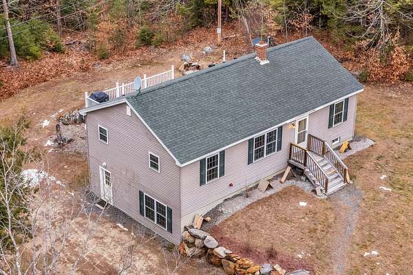 This thoughtfully designed four-bedroom, three-bath ranch is tucked into a peaceful wooded setting with direct frontage on Lower Narrows Pond. A private dock and a newly designed staircase provide easy access to the water. Built for efficiency, the home features an ICF foundation to help keep heating and cooling efficient throughout the year, along with an on-demand backup generator for added peace of mind. Make this your year-round home or continue its success as a turnkey rental, just like the current owners have; staged, furnished, and truly move-in ready. The property features 12 fruitful blueberry bushes and invites year-round enjoyment, from cozy evening fires and relaxing dips in the hot tub to ice fishing and skating in the winter, or swimming, boating, and lakeside fun in the summer. Enjoy quiet walks along the private one-mile road or take in tranquil water views from the back deck. Conveniently located near local amenities and within easy driving distance to Augusta, Lewiston/Auburn, and the interstate, this waterfront property offers a rare blend of privacy, comfort, and accessibility. Schedule your showing today and experience lakefront living at its finest!!