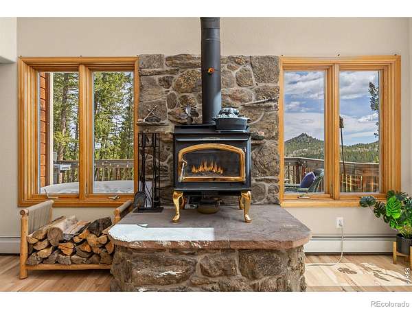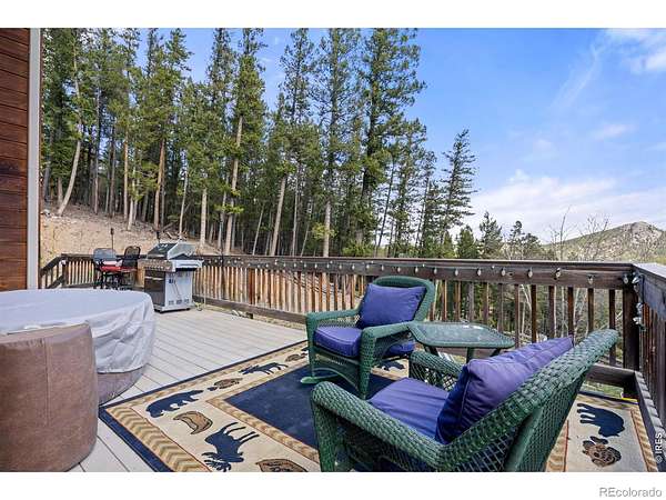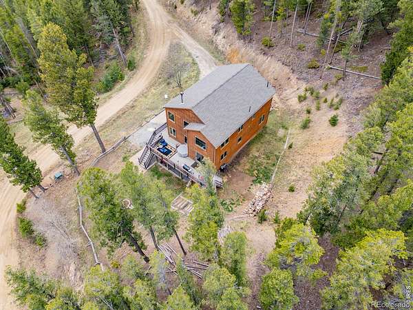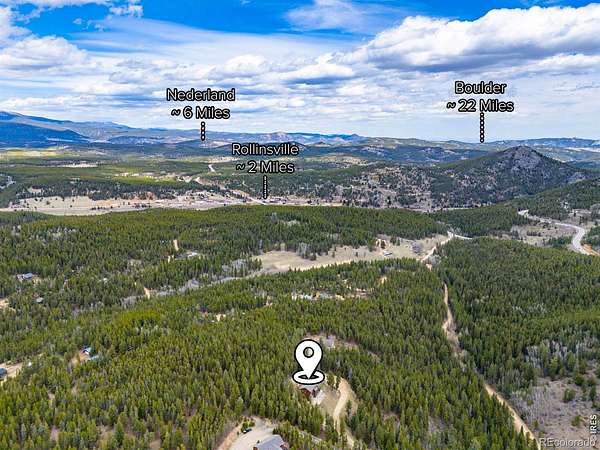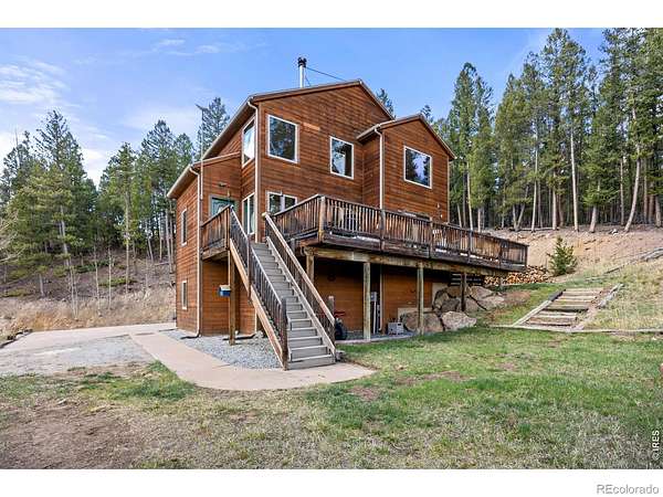 Perched on a hillside in northern Gilpin County, this spacious custom home sits on 3.34 acres near the desirable mountain town of Rollinsville- where recreation and adventure are right out your back door, yet amenities in Nederland and Boulder are just a short drive away. Set along a private dead-end road, the property offers stunning views, abundant sunshine and peaceful seclusion. Impeccably maintained and fully updated, this immaculate home is ready for a seamless transition. Surrounded by Roosevelt National Forest, you'll enjoy miles of trails and forest service roads connecting to St. Mary's Glacier, Winter Park, Rollins Pass and beyond- ideal for OHVs, skiing, biking or simply immersing yourself in nature. Inside, a vaulted, open-concept layout welcomes you with newly refinished hardwood floors, while an elevated wood stove adds warmth and character. A handcrafted log staircase, railings and beetle kill pine accents infuse the home with authentic mountain charm. The kitchen features granite countertops, updated appliances and an island, flowing effortlessly into a spacious dining area and out to a sunlit deck- perfect for taking in the views.The main level includes 2 guest bedrooms, a remodeled 3/4 bath and a generous laundry room. Upstairs, the expansive primary suite offers a luxurious remodeled bath with a copper soaking tub, glass shower, dual sinks and an oversized walk-in closet with custom finishes. A versatile family room with panoramic views completes the upper level.The lower level features a private guest suite with kitchenette and remodeled 3/4 bath- ideal for visitors or potential rental income. With a 2-car attached garage, oversized shed and a flat concrete parking area, there's ample space for all your gear. Located just 1.8 miles from the Peak to Peak Highway and minutes to Nederland or Eldora Ski Resort, this exceptional property blends mountain living, privacy and convenience in a truly special setting.