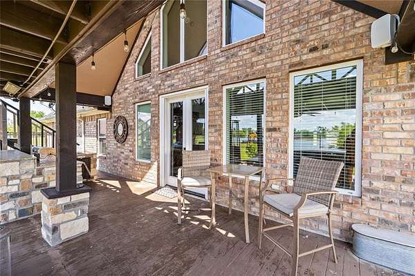 MOTIVATED SELLER! The feeling of home can't be replaced and this one captures it from the very first look. Set on peaceful waterfront views yet only minutes from Celebration Plaza and I30 access, this property offers the RARE BALANCE of luxury, convenience, and total calm. As you step onto the oversized deck, the horizon opens up in front of you, creating a natural gathering place for morning coffee, family celebrations, and unforgettable sunsets. Inside, the layout is designed for real living. Split floor plan and open concept! The kitchen features gorgeous granite countertops, modern fixtures perfect for each setting, flowing effortlessly into the living area where custom windows bring the outdoors in and a gas-log fireplace adds warmth at the touch of a button. The primary suite feels like a getaway of its own, complete with a walk-through rainfall shower, jetted tub, and custom closet built-ins for everyday ease. Watch the news or your fav show on the Vanity Mirror TV while you get ready! This home is as smart as it is beautiful; with a Nest thermostat, WiFi-enabled garage door opener, energy-efficient LED lighting, whole-home tankless water heater, and high-speed fiber internet. A full Vivint security system with cameras and monitored fire, carbon detection provides reliable peace of mind for both owners and visiting family. Refrigerator, living-room couch, and patio TV convey, making move-in simple! The utility room offers a convenient drop zone, and the oversized fourth bedroom adapts easily to an office, playroom, media space, or home gym. Outdoors, the upper deck sets the stage for hosting, while the lower patio is ideal for game days, grilling, or quiet afternoons by the water. A generous workshop keeps tools, toys, and lake gear organized and out of sight. Homes with this combination of scenery, comfort, and longevity rarely become available. This is a place built for gathering, relaxing, and creating memories a home that welcomes every season of life!