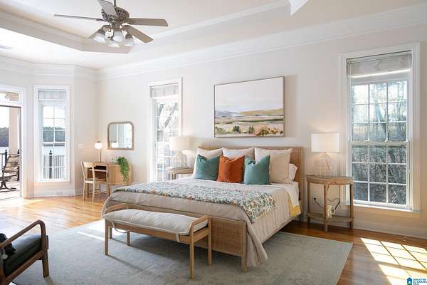 Escape to your private oasis on a secluded peninsula at beautiful Lay Lake. This one-of-a-kind 6-bed, 6-bath luxury home offers the perfect blend of upscale comfort. Step inside to find spacious, thoughtfully designed living areas, state-of-the-art kitchen with stone countertops, custom cabinetry, beverage bar, & a 2nd full kitchen on the terrace level -- ideal for generational living. Enjoy 3 fireplaces, soaring ceilings, & massive windows showcasing panoramic lake views. The serene master suite features stunning lake views, a spa-inspired bathroom with double shower, dual vanities, & a large walk-in closet. Outside, relax on the tiled terrace, swim in the sparkling pool, or take advantage of the double-deck boathouse for boating, fishing, or lounging by the water. Additional features include a large storage house, multiple outdoor living areas, and luxury finishes throughout. This is lakeside living at its finest. Don't miss this rare opportunity to rent a true lakeside retreat!