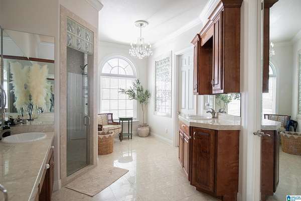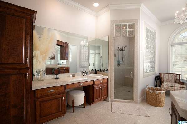 - 9+ Ceiling, Blinds/Miniblinds, Double Split Vanity, Dryer, Garden Tub, Jetted Tub, Linen Closet, Plantation Shutters, Separate Shower, Smoke/Fire Alarm, Trey Ceiling, Tub/Shower Combo, Walk-In Closet, Wet Bar, Window Treatments-All
