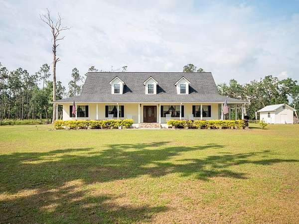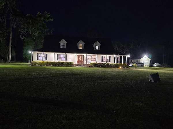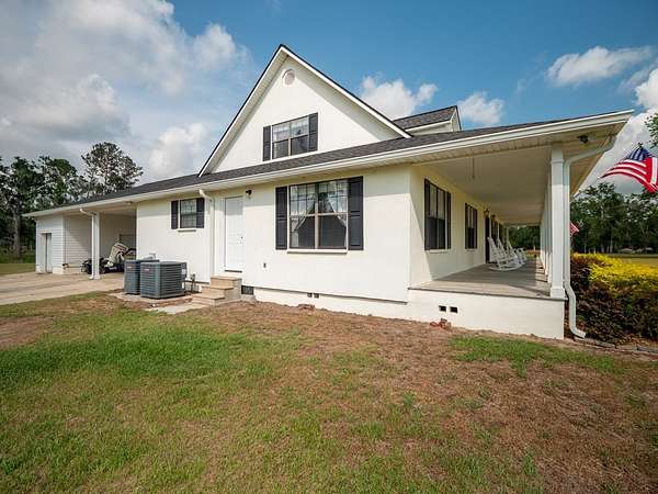 Enjoy the peace and privacy of country living at its best in this expansive 3,476 sq ft home set on 2 beautifully maintained acres. Located just a short 25 minute drive from Valdosta, this property features generously sized living areas and wraparound porches on three sides. Inside the home offers a large and comfortable layout, including a spacious 17x25 primary suite on the main floor--an ideal retreat with plenty of room for a sitting area, office nook, or additional furniture. Upstairs, you'll find two bedrooms on each end of the hallway, along with a large bonus room that also functions as an additional bedroom, offering flexible space for guests, a home office, playroom, or game room. The home includes plenty of extra closets and storage throughout, making it easy to stay organized. As if this home couldn't get any sweeter, how about a piece of mind with purchase of a newer roof and two HVAC units, both installed just five years ago. French doors at the rear of the home offer a charming entrance and abundant natural light. A two-vehicle carport includes two attached storage rooms for added convenience. Out back, you'll find a raised 10x10 clubhouse and a spacious 16x32 storage shed with endless potential--use it as a workshop, home gym, hobby space, or even convert it into a guest suite. A 28x45 concrete slab offers additional possibilities such as extra parking for RVs or boats, a sports court, outdoor entertaining space. Security lighting surrounds the entire property, offering both enhanced safety and warm evening ambiance--illuminating the landscape beautifully while creating a welcoming glow after sunset. While a small pond adjacent to the property IS NOT included in the sale, it offers a scenic view from the front porch--perfect for morning coffee or evening relaxation. Deer frequently come to feed in the evenings, adding to the peaceful, nature-filled setting. This beautiful, one-of-a-kind home will not last long!! Schedule your private tour TODAY!
