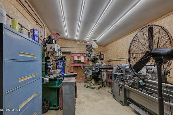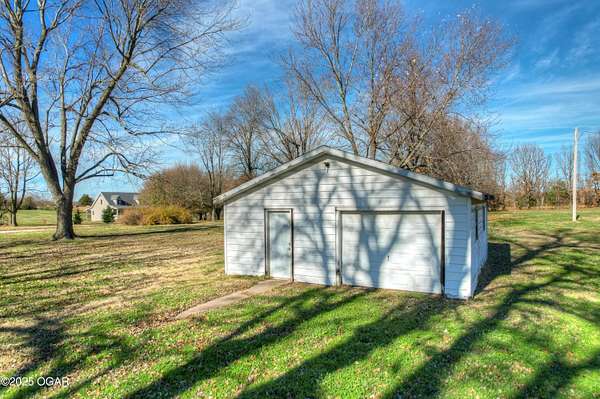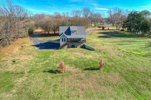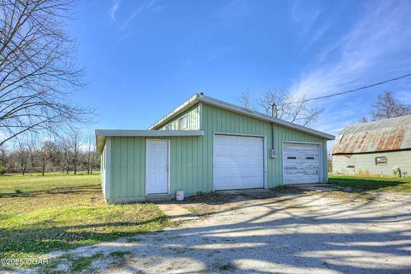 Gorgeous. Stunning. Perfection in Peaceful Living. Discover this beautifully remodeled 1,825 sq ft two-story home. As of 12/17/25 survey is complete and acreage is 6.6 acres. This property offer, the ideal blend of comfort, craftsmanship, and countryside charm. Featuring 3 bedrooms, 2.5 baths, and an impressive array of outbuildings-including a 40*40 workshop, barn, and detached 2-car garage-this property is perfectly set up for hobbyists, or anyone craving space to spread out. With two wells on the property, the potential to add a second home is already built in. Originally built in 1999 and completely remodeled in 2018, this home showcases high-quality finishes throughout. The main level features gorgeous wide-plank wood flooring, while the basement family room offers luxury vinyl plank, bedrooms are comfortably carpeted, and all baths feature tile flooring. The primary suite and second-floor bath both include spacious walk-in showers. Updated, double pane large windows throughout the home. Inside, you'll find an inviting living room with a brick gas fireplace and abundant natural light from floor-ceiling windows. The updated kitchen stands out with granite and quartz countertops, a center island, breakfast nook, modern fixtures, and updated appliances-perfect for cooking, gathering, and entertaining. The oversized drive-under two-car garage with bump-out provides extra room for storage or projects. Upstairs, two generous bedrooms with charming dormers create a warm, comfortable atmosphere. Outdoor living shines here: enjoy the full-length covered front porch, ideal for relaxing and visiting, or step onto the full-length covered back deck overlooking your pristine 6.6 acres. Peaceful views and country living surround you, with easy access to I-49 for north or southbound travel needs. This is a dream home-every detail is precise, functional, and pristine.