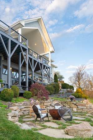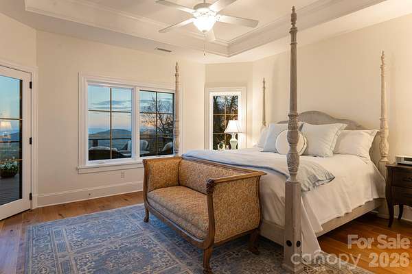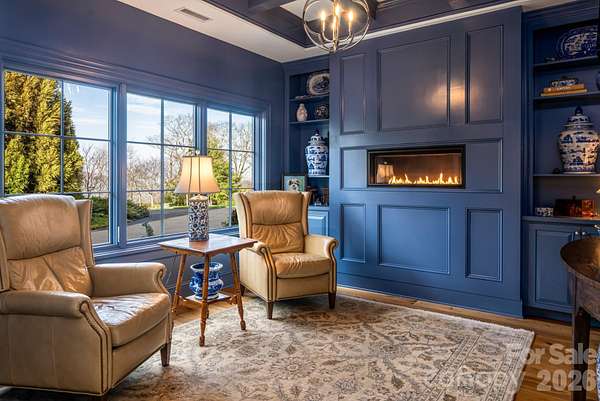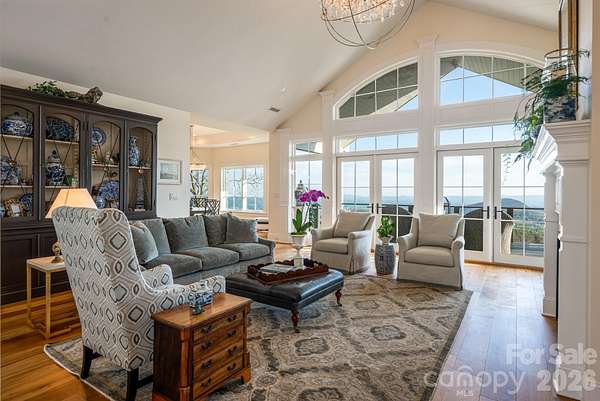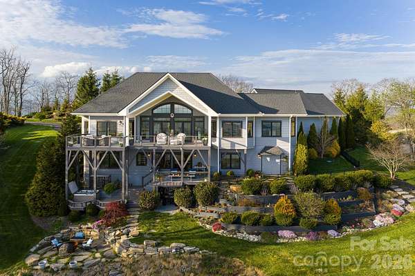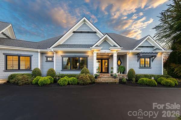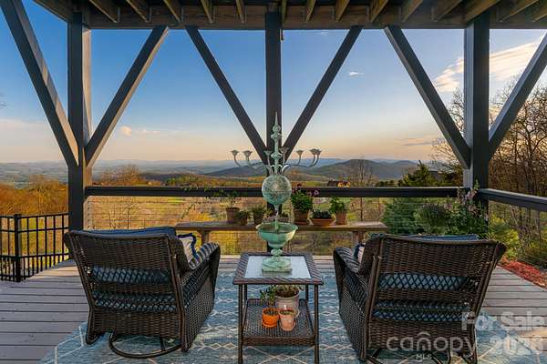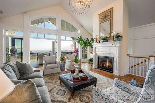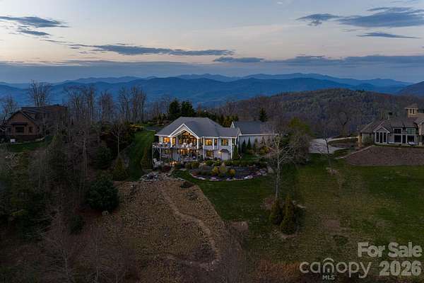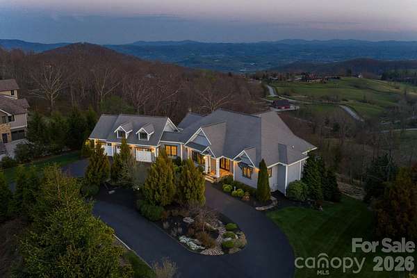 Unforgettable panoramic views and elegant mountain aesthetic define this beautiful ridgetop residence within the gated community of Grand Highlands at Bearwallow Mountain. At nearly 4,000 feet of elevation, the Blue Ridge Mountains are not a backdrop - they are a part of your everyday experience. Wake up with a morning walk along the ridge, enjoying sunrise over the mountains, and end your day watching the brilliant colors and layered dimension of sunset with long-range south-facing views from your back deck. Designed to flow and live effortlessly, the light-filled, 3,313 sq ft floor plan offers thoughtful design and stunning outdoor living spaces. Gorgeous principal rooms with large windows carry the views throughout, while three fireplaces anchor multiple living spaces with a romantic and elevated mountain aesthetic. The designer kitchen and dining area are inviting with refined elegance: custom cabinetry with integrated refrigerator, a high-end range, marble tile backsplash, and a multi-functional island with integrated sink and counter-height seating, equally at home for a quiet breakfast or an evening with friends. And when the golden hour glow begins to arrive, simply open the doors and step onto the deck - wine in hand, fire table glowing, guests gathered as the sun dips behind the ridgeline. Step outside and you'll find a backyard of lush, thoughtfully designed landscaping and outdoor living spaces. Enjoy a private hot tub with the perfect vantage point to enjoy long range views. A fire pit seating area nestled among the landscape invites evenings spent in the open air, surrounded by the mountains. A circular driveway, three-car garage, and fenced yard complete the story, creating a welcoming, warm and truly elegant home that lives as beautifully as it looks. Community life at Grand Highlands is as rich as the scenery. A beautifully appointed lodge-style clubhouse serves as the heart of the neighborhood, offering a fitness center, event and meeting spaces, a library, a community garden, and a lively social calendar filled with pub nights, trivia, concerts, and more. Outside, residents enjoy a dog park, tennis and pickleball courts, and peaceful hiking trails - plus direct access to two trailheads. Just 25-30 minutes to both Asheville and Hendersonville, close to all the culture, cuisine, and conveniences each city offers.