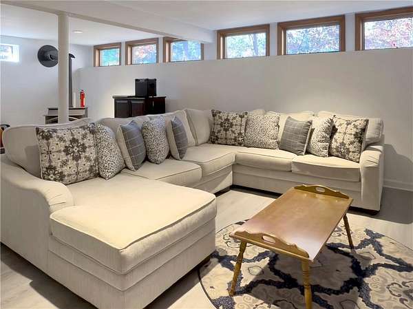 Discover privacy, space, and turn-key convenience in this 1986 Dutch Colonial set on 1.7 acres in Charlestown. With 1,892 sq. ft. of well-designed living space plus a partially finished 600 sq. ft. basement with a wood stove, this home offers excellent flexibility for full-time living, a vacation retreat, or a ready-to-go investment property. With a recently refreshed interior, the home will be sold completely outfitted, including furniture and appliances, kitchenware, linens, and bedding. This makes it an ideal opportunity for immediate short-term rental income or an effortless move-in. The first floor features a great flow with a fully equipped kitchen that is open to the dining area. Step outside to enjoy mature landscaping, a spacious yard, patio furniture, and an outdoor grill. It's an ideal setup for relaxing after a day at the beach. Just 7 minutes from Charlestown Town Beach and the Charlestown Breachway, the location offers the best of coastal living with the benefit of low Charlestown taxes. Nestled on a private lot abutting a quiet neighborhood and close to all of Rhode Island's attractions, this home delivers both comfort and convenience. Whether you're looking for a serene primary residence, a furnished getaway, or a well-performing short-term rental, this property is truly turn-key and ready for its next chapter. Price reflects the need for exterior siding replacement.