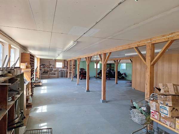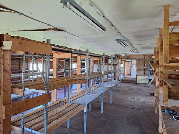 Property being taxed as commercial but is in a residential zone. Would need a variance to stay commercial, would be great multifamily spot, build your home and retain building for your business or utilize building as business and Apts with very large open lot for expansion or play area. This large 2 story building on the corner of Route 12 and South Street has a very large lower-level lot with views to the VT hills. Walk around on it, so much space. Building has a metal roof, 2 bathrooms, 2-3 offices and TONS of shelves to store your items. Shelving can stay or leave. Plenty of land to build an additional building. Property is on town water and town sewer. Phase 1 electric on Route 12, check with Liberty Utilites. Plenty of parking on a tar driveway. total of 3 garage doors for easy access. Great soil for gardens.
