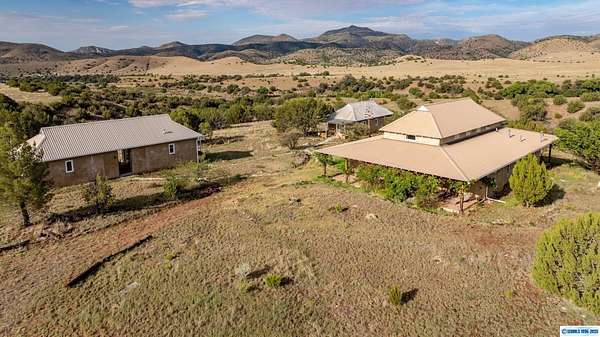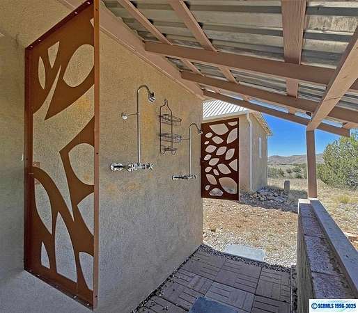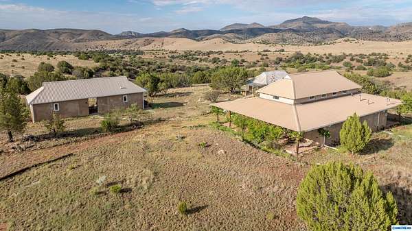 "Azure" is an exquisitely remodeled, eco-friendly, strawbale retreat in tranquil Mimbres Valley with incredible, 360-degree views of the surrounding landscape. 3 separate dwellings on 40+ acres, offering versatility as a residence with guest casitas or as a commercial enterprise. The main house features a primary suite with a copper soaking tub, double-headed shower, custom double sink and an infrared sauna. There is a commercial-style kitchen with stainless appliances, dining area and walk-in pantry. Main area has high ceilings, natural light and a loft perfect for a studio. The 2 casitas with baths, and one with a full kitchen, are perfect for visitors or renters. A beautiful, open breezeway separates 2 living spaces in one casita. Relax in the private, natural landscape with endless vistas from one of the 1000+sq. ft. of covered patios. Outdoor showers add to your experience. Gila Wilderness, historical sites, hot springs, vineyards and regional airport make this a New Mexico dream!