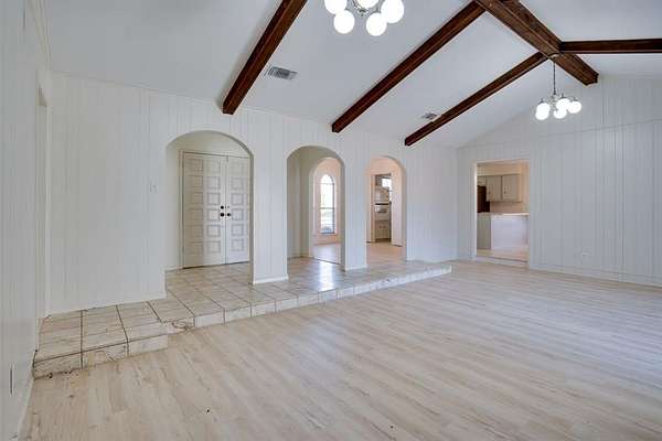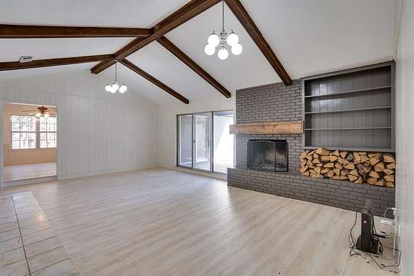 Welcome to 890 Copper Canyon Road in Argyle, a spacious and light-filled 3-bedroom, 2-bath home set on a beautifully shaded oversized lot offering a peaceful country feel with convenient access to shopping and dining. This well-maintained residence features a thoughtful layout with formal and casual living spaces, including a large living room with vaulted ceilings, exposed wood beams, and a striking brick fireplace with built-in shelving. The kitchen offers abundant cabinetry, generous counter space, a breakfast bar, and an adjacent breakfast nook overlooking the yard, while a separate formal dining area provides space for entertaining. Neutral finishes, bright flooring, and natural light throughout enhance the inviting interior, and a dedicated laundry room includes washer and dryer, with refrigerator also included for true move-in readiness. Outdoors, mature trees and expansive open space create privacy, shade, and room to relax or entertain, making this home a perfect blend of comfort, charm, and everyday convenience.Note: Use of wood burning fireplace is prohibited. Washer, dryer, Fridge provided, but not warranted.