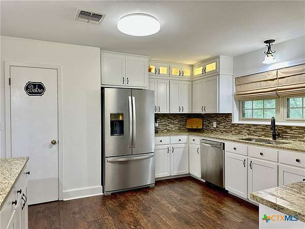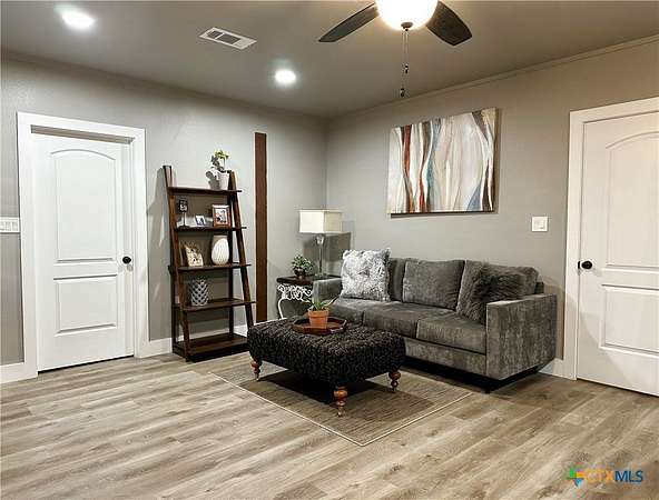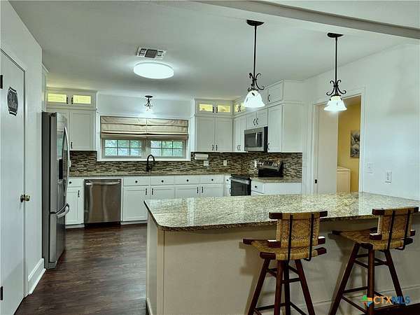 Set on 3.6 acres, this extensively updated 3-bedroom, 2.5-bath residence offers a rare blend of refined finishes, functional space, and versatility. Renovated in 2016, the home showcases granite countertops and white shaker-style cabinetry throughout the kitchen and bathrooms, complemented by upper glass-front cabinets with lighting for a polished, custom feel. The main living area is anchored by a fireplace with shiplap detailing, seamlessly carried into the dining space to create a cohesive, modern aesthetic. Decorative wainscoting adds architectural interest in the primary suite, guest bathroom, and foyer. Designed with flexibility in mind, a 2021 conversion of the former 3-bay carport expanded the home to include a spacious media room with wet bar, a large office that can easily function as a fourth bedroom, and a well-placed half bath-ideal for entertaining or multi-generational living. Recent improvements include a septic system upgrade in 2023 and additional attic insulation in 2024. The main living areas have been enhanced with fresh interior paint, delivering a clean and move-in-ready presentation. The grounds offer both usability and privacy, featuring a storage/garage building added approximately four years ago, along with a separate workshop suited for projects, equipment, or hobbies. A current wildlife exemption provides reduced property taxes, with the option for the buyer to reapply. The manufactured home on the property does not convey and will be removed. Owner-agent