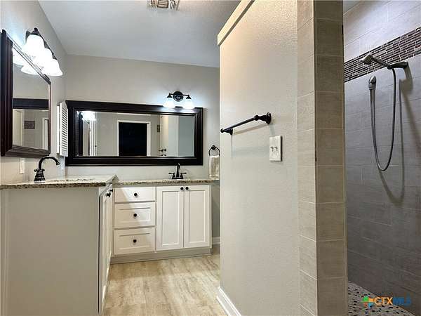 - All Bedrooms Down, Attic, Built In Features, Ceiling Fans, Chandelier, Double Vanity, Entrance Foyer, Home Office, Main Level Primary, Multiple Living Areas, Open Floorplan, Primary Downstairs, Pull Down Attic Stairs, Recessed Lighting, Separate Shower, Shower Only, Tub Shower, Walk In Closets, Wet Bar, Window Treatments