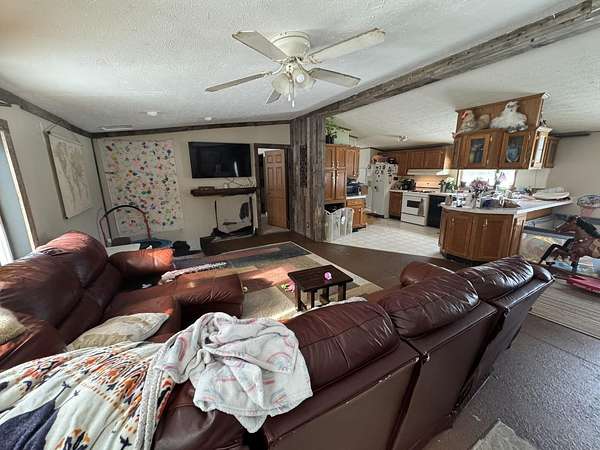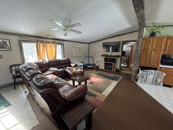 Located on 3.40 acres in the sought-after Irons area, this property offers the perfect basecamp for outdoor enthusiasts or year around living. Just down the road from miles of ORV and snowmobile trails and nestled in the Heart of the Manistee National Forest, you'll enjoy direct access to all your recreation needs. This manufactured home features 3 bedrooms, 2 full baths, and an open-concept living room, dining area, and kitchen--ideal for gathering with family and friends. Main floor laundry adds convenience for everyday living. The home is ready for your personal touch, needing some flooring and a few finishing updates to truly make it your own. Outside, you'll find a barn (in need of a new roof) along with several additional outbuildings providing plenty of storage for toys, tools, and equipment. Conveniently located just west of M-37, this property offers easy, year-round access while still giving you that peaceful Up North feel.