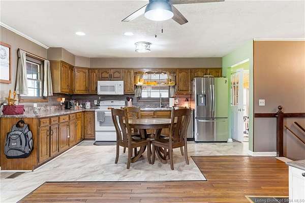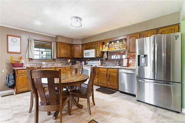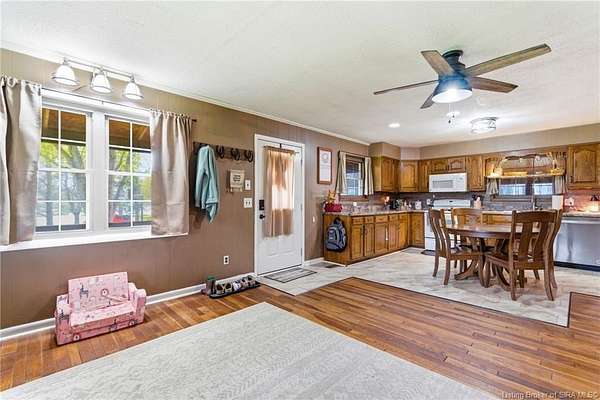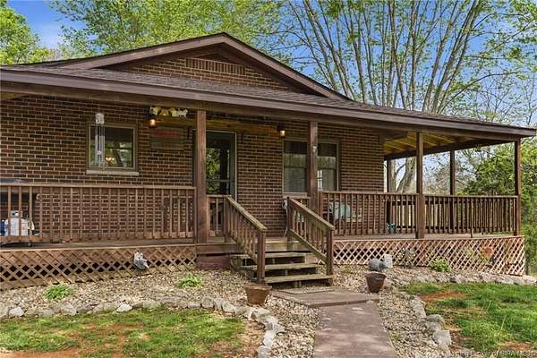 Welcome to your own slice of Southern Indiana paradise! Nestled on 9.63 acres, this beautiful mini farm offers the perfect blend of space, functionality, and country charm. Step inside to find a bright, inviting sunroom, a spacious eat-in kitchen with abundant cabinetry, and a full finished basement-giving you flexible space for entertaining, relaxing, or whatever fits your lifestyle. The huge covered porch is perfect for slow mornings and peaceful evenings overlooking your land. Outside is where this property truly shines. The fenced acreage is ready for animals, making it ideal for hobby farming, homesteading, or simply enjoying wide-open space. A detached garage adds convenience, while the property also includes a 3-sided barn and an additional barn with water and electric offering incredible versatility for livestock, storage, or future projects.Whether you're looking for a working mini farm or a private retreat, this property delivers the lifestyle you've been dreaming of. Rare opportunity to own usable acreage with room to live, grow, and make it your own.