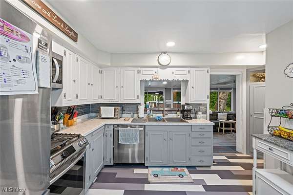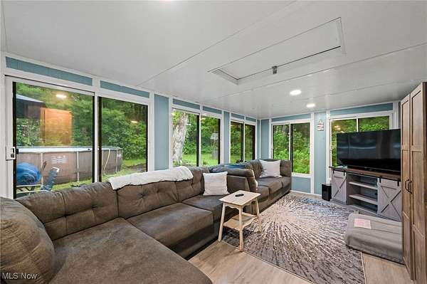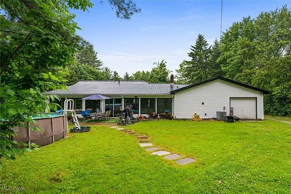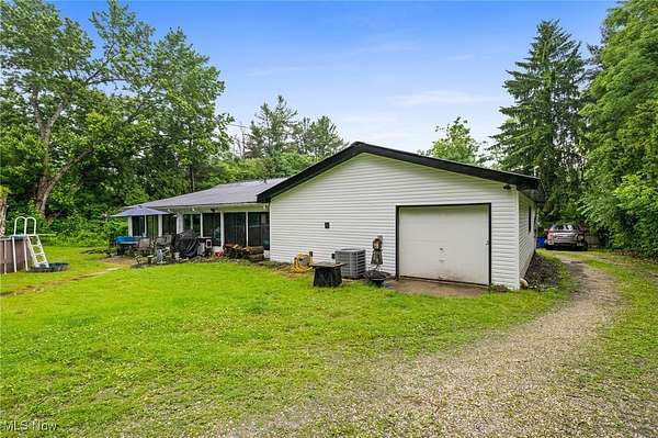 Introducing an extraordinary Chagrin Falls property that effortlessly blends charm with modern luxury. Set back from the road, this secluded retreat balances privacy and convenience. An updated 3-bedroom, 2-bath home offers a harmonious fusion of character and refined comfort. Sun-drenched interiors are complemented by a thoughtfully crafted layout, from the inviting living room to the expansive four-season room that seamlessly connects with the outdoor space. With 3 spacious bedrooms and 2 beautifully appointed baths, this home ensures convenience and style. One bath features a main-level laundry, adding ease to your everyday routine. The kitchen strikes the perfect balance between form and function, exuding warmth and inviting comfort. The unfinished basement offers vast potential, whether for additional storage or to be transformed into an additional living space. Recent enhancements include new high-end flooring, a durable metal roof, upgraded siding, windows, and electrical systems, while both the furnace and hot water tank are just a year old. Outdoors, a vast yard showcases an above-ground pool, creating an ideal space for outdoor relaxation and entertaining. Toward the rear of the property, a barn with a garage entrance and car lift adds both character and functionality. An upstairs residential unit, currently leased at $1,000/month with 8 months remaining, offers additional income potential. This property, rich in character and limitless in opportunity, is ready to elevate your lifestyle. Don't miss the chance to experience its unique allure-schedule your private showing today!