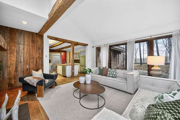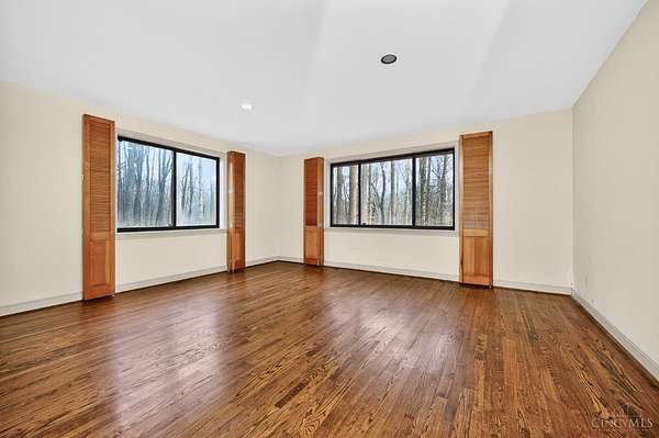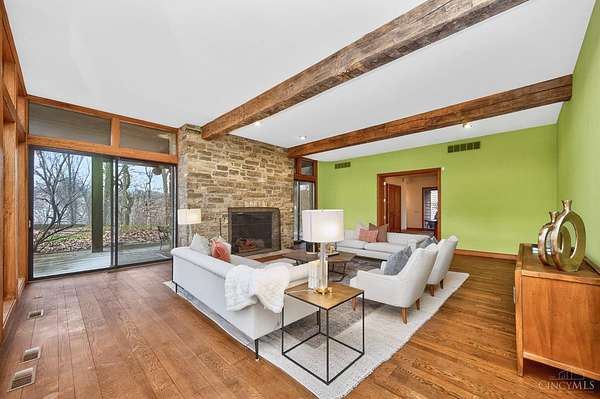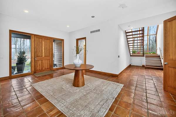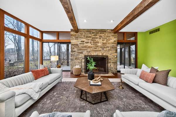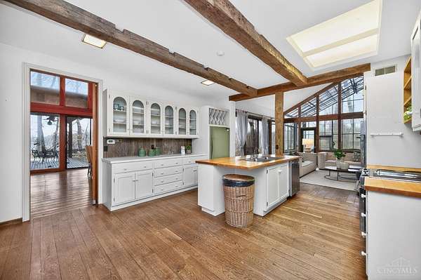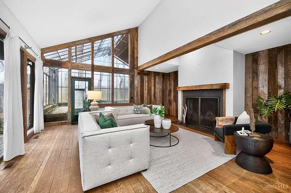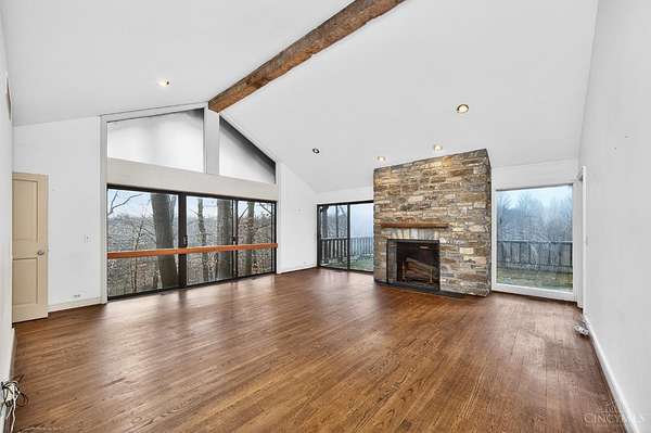 A once-in-a-lifetime opportunity to acquire 22.9 acres in one of Indian Hill's most coveted locations; conveniently nestled at the intersection of Hopewell & Weil Roads. Originally part of the historic Peterloon Estate, this exceptional property offers a private, wooded setting with close proximity to highway access, the Village, historic downtown Loveland & Montgomery. The true value lies in the land & its irreplaceable location, nearly 23 acres with public water & sewer, offering extraordinary potential for a future estate, equestrian use, or legacy holding. The property includes an original residence & a horse barn, providing utility & architectural character. The Northwest Contemporary inspired home was thoughtfully designed to blend with its surroundings, featuring hand-hewn beams, stone, slate & limestone fireplaces, expansive floor-to-ceiling windows and seamless indoor-outdoor living. A rare offering defined by history, craftsmanship, privacy, and enduring value.
