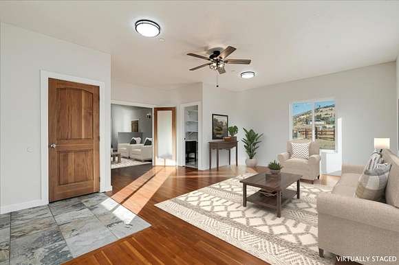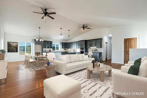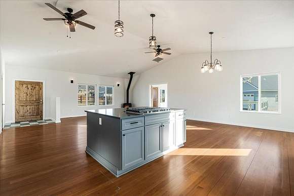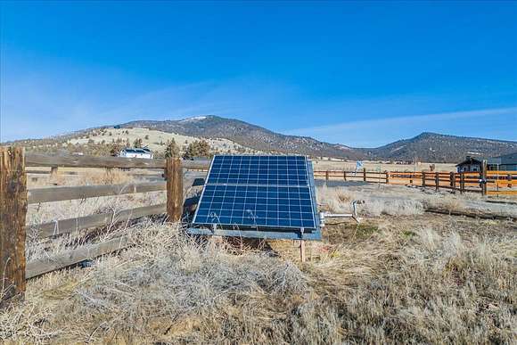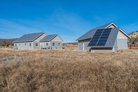 Originally designed and built as a fully off-grid property, this home is now connected to the grid to ensure consistent access to electricity while allowing for minimal electric bills. Located right off Highway 26, this 5-acre property near Prineville offers convenient access while maintaining a quiet atmosphere inside the home. Nestled within a peaceful HOA neighborhood of just 10 homes, it provides privacy and a close-knit community feel. The property includes access to 4.4 acres of irrigation through the Ochoco Irrigation District--simply install the irrigation equipment to utilize those water rights. Inside, enjoy a light-filled, remodeled interior featuring a spacious open kitchen with new appliances, wine fridge, and under-cabinet lighting. An expansive family room, 3 bedrooms, and 2.5 baths offer comfort and convenience. Deck footings are in place and ready for your custom outdoor space. A detached oversized two-car garage and dedicated solar panel shed complete the property.