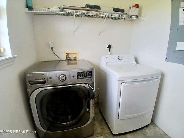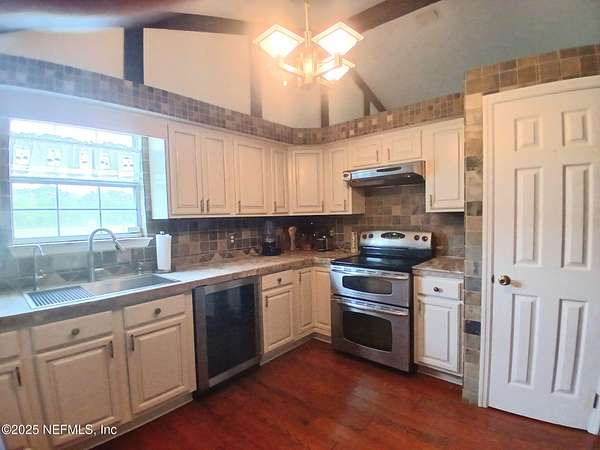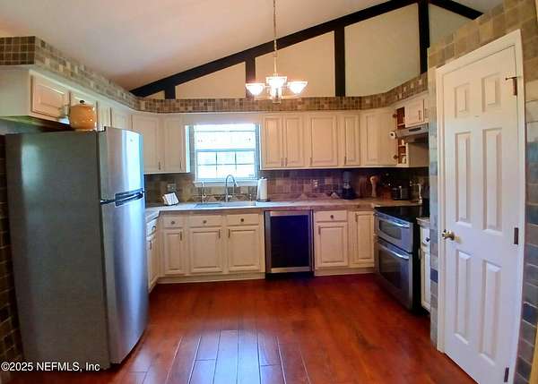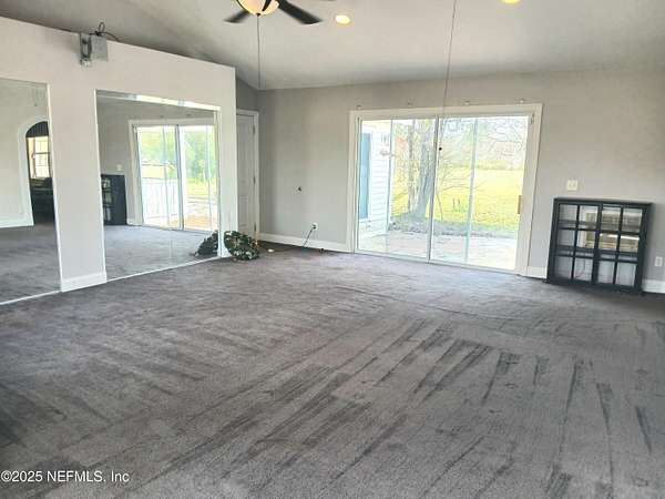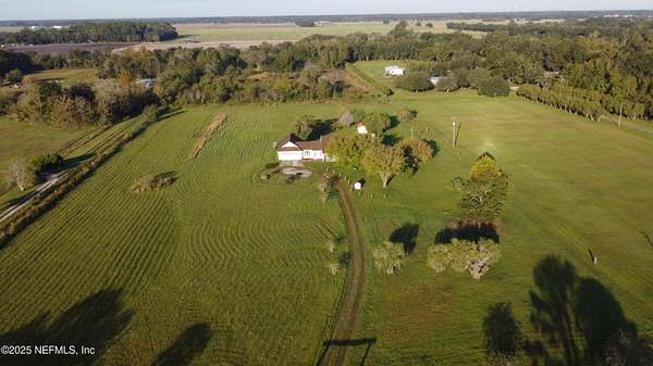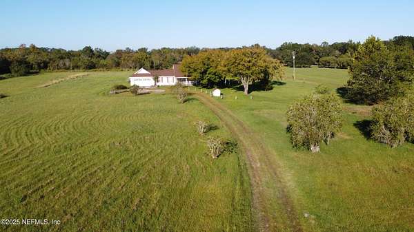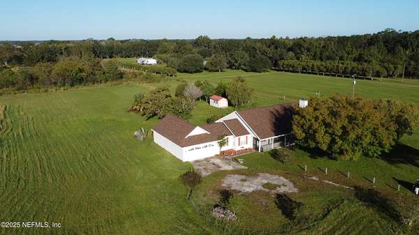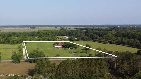 RARE FIND in St. Johns County! This gorgeous ranch-style home on approximately 5 acres of cleared pasture blends comfort, space, and country charm. Recent upgrades include a brand-new roof, 2025 A/C, 2025 hot water heater, refrigerator, dryer, and fresh paint throughout. The spacious owner's suite offers two large mirrored closets, a sunny nook, sliding doors to the porch, and a versatile bonus room. The great room features wood floors, vaulted beamed ceilings, and a brick wood-burning fireplace. The kitchen shines with stone countertops, tile backsplash, and stainless-steel appliances. A flexible room off the two-car garage makes an ideal office, workout space, or guest room and opens directly to the screened, tiled front porch-perfect for enjoying peaceful mornings. Out back, the stone patio overlooks beautiful open views. There is an easement along west property line. Zoned Open Rural with no HOA, this property welcomes horses, livestock, RVs, or boats. The owner's suite offers 2 large closets with mirrored sliding doors a nook with windows, sliding glass door to the porch and a spacious bonus room. Enjoy the covered, tiled front porch or stone back patio with scenic views. The great room includes wood floors, vaulted beamed ceilings, and a brick wood-burning fireplace. The kitchen has stone countertops, tile backsplash, stainless appliances, and a wine cooler, with built-in cabinetry in the dining area. Attached to the garage is another flex room, ideal as office or guest room. No HOAideal for horses, livestock, boats, or RVs.