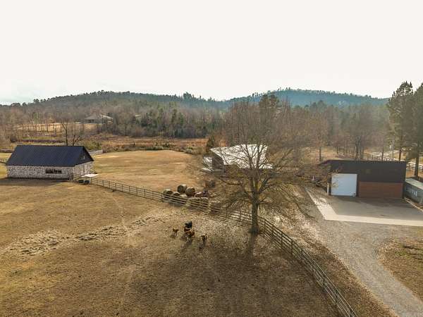 Discover a stunning ranch-style retreat just minutes from West Little Rock. This private estate features a beautifully designed home with vaulted ceilings, natural wood accents, and huge windows framing incredible mountain views. Enjoy a fully equipped shop with an office loft, a custom barn, and a resort-style pool with an oversized entertaining deck--perfect for relaxing or hosting. The property also includes a spring-fed pond, a year-round creek, mature trees, and serene outdoor spaces full of wildlife. With easy access to the Promenade at Chenal, Pinnacle Mountain State Park, restaurants, and top-rated schools, this is a rare opportunity to enjoy both privacy and convenience. A one-of-a-kind Arkansas oasis ready for its next owner.