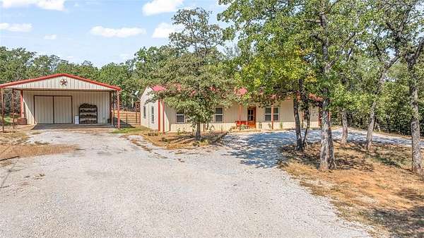 Bring the horses and enjoy Paradise, with a beautifully updated barndominium on a peaceful dead-end road and no HOA! This stunning pet and horse-ready property offers the perfect blend of quiet country living and modern comfort. The interior home offers 3 split bedrooms, 2 bathrooms with open concept living spaces. New interior features include new granite, new lighting, new solid wood exterior doors, a new pantry, stained concrete floors, fresh paint and new interior trim throughout. Step outside and enjoy a well-maintained property surrounded by mature trees & cleared underbrush. Ideal for horse lovers, this property includes a 20x30 horse barn, perimeter and cross fencing, and is located in a horse-friendly neighborhood. A new electric gated entrance and full fencing provide both security and privacy. Additional highlights include: a 30X40 insulated shop (12' front doors) with electricity, 240v outlet, a 2 car carport, RV hookup, refinished gravel driveway, pet safe area, native landscaping and an 8X8 custom chicken coop. This one-of-a-kind property is move-in ready for you and your animals. This property is conveniently located 15 minutes from Springtown, 35 minutes to Alliance, 20 minutes to Decatur and 40 minutes to Weatherford. Don't miss your chance to own this serene slice of Texas country life.