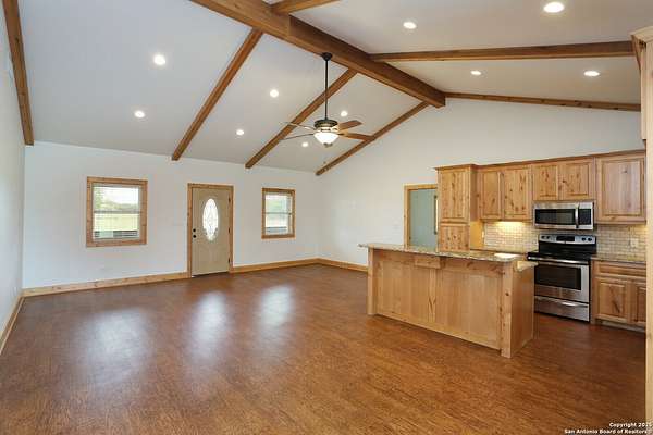 Welcome Home to 891 Hopkinsville Rd, located in Cuero, TX! Nestled on a sprawling 2.11-acres, the Main house has 2-bedrooms, 2-bathrooms and Guesthouse with an additional 1-bedroom and 1-bathroom, which offers a rare combination of natural beauty, functional versatility, and serene privacy. This home has an open floor plan with high ceilings in the living area and kitchen, breakfast area, screened front patio, oversized detached garage/workshop with room for a small office or storage, another two-car carport/workshop with plenty of storage space, and extra storage for lawn equipment or golf cart. Imagine sitting in your screened front patio, enjoying the beautiful sunrise, drinking your morning coffee, watching deer or other wildlife. Love to fish? Cast a line in the stocked pond. This house is perfect for relaxing evenings or hosting outdoor gatherings. The fully fenced exterior, surrounded by mature oak trees, covered walkways from the main house to the guesthouse (ADU) to the garage/workshops. The expansive concrete slab is perfect for barbequing or gatherings, and the outdoor sink area makes for easy cleaning. Schedule your tour today and experience everything this unique property has to offer!