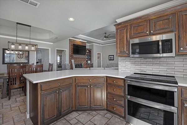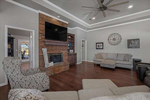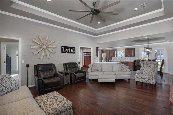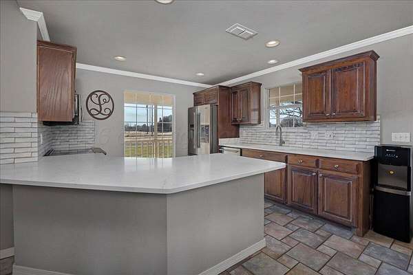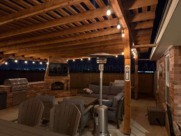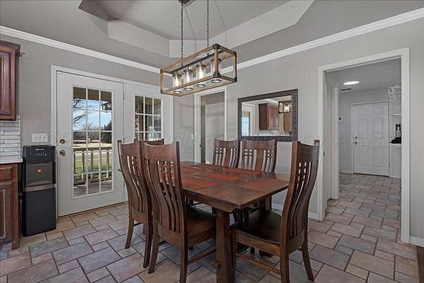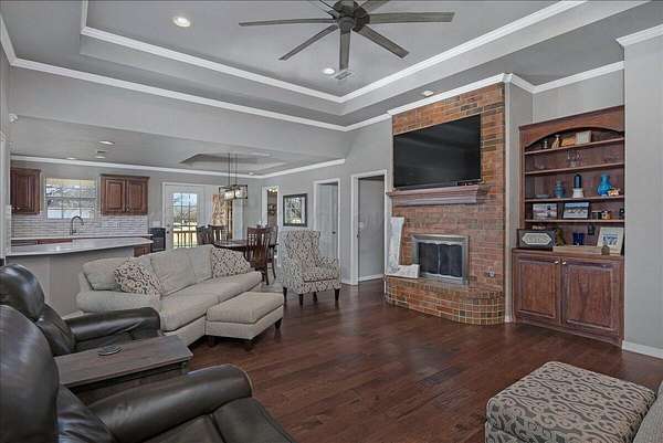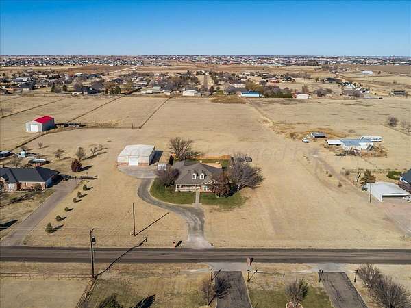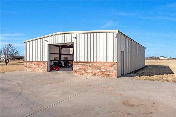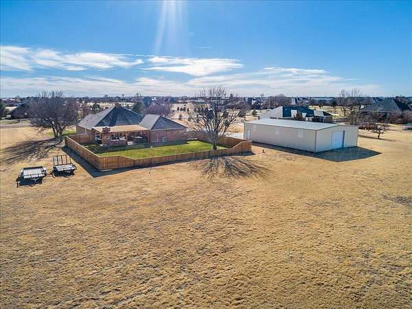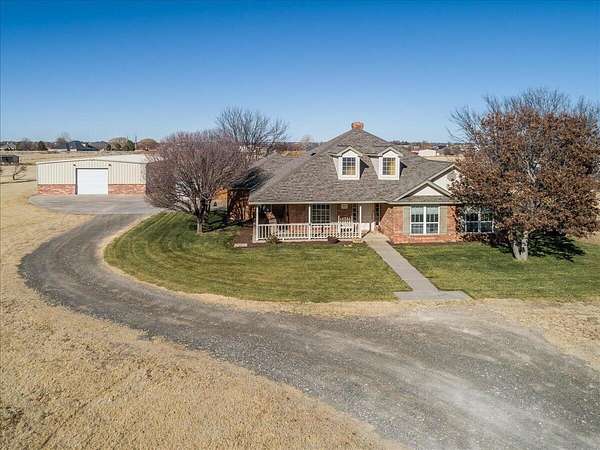 Impressive 4-bedroom all electric home on 6 acres in Dove Landing. Property includes a 60' x40' insulated SHOP with electricity and commercial grade air compressor. Shop has two 12' x 10' overhead doors and a walk-through door. This one owner home has 3 updated bathrooms, a 3-car garage and an open floor plan. Dual sided wood burning fireplace in living room and office. Remodeled kitchen has new appliances, quartz countertops and tile backsplash. Enjoy outdoor living with a pergola, kitchen and fireplace on the spacious back patio. New Class 4 roof shingles and wood fence. Spray foam insulation recently added. Storm shelter and sprinkler system.