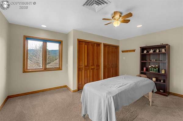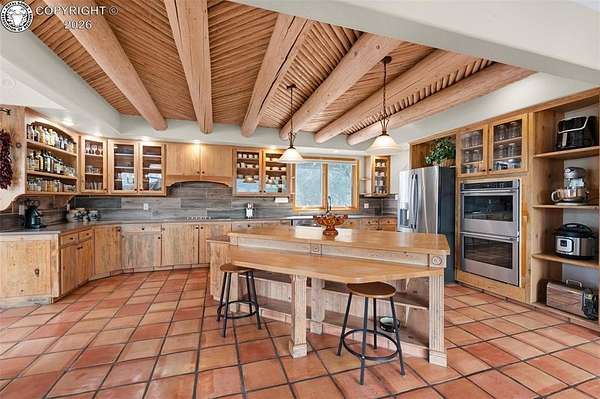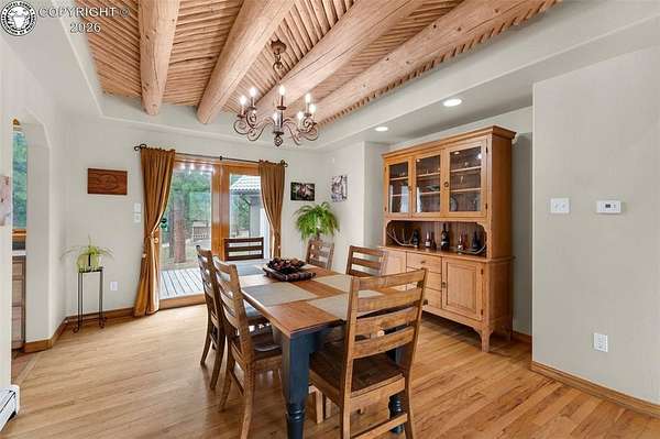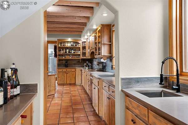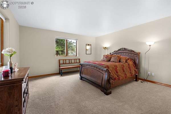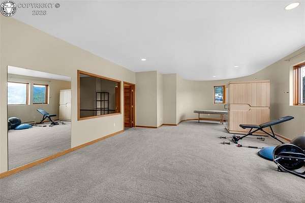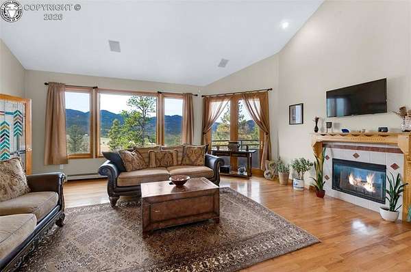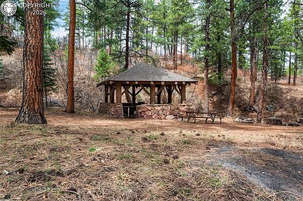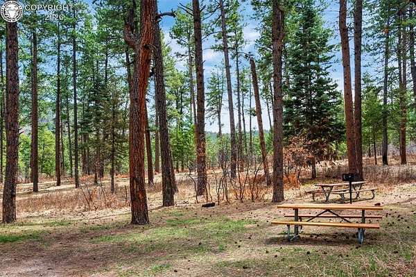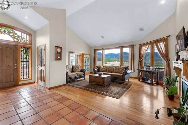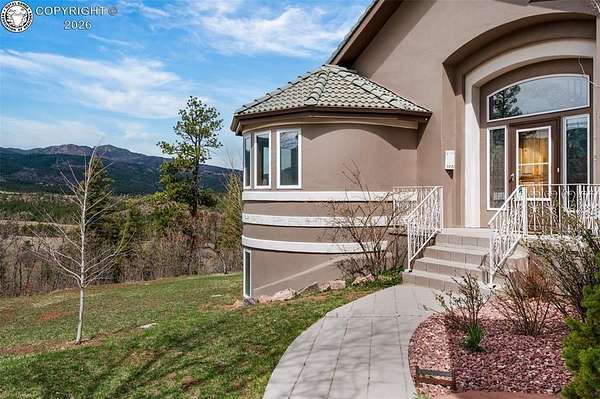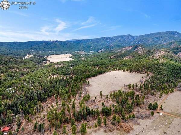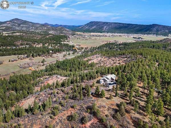 Set atop 40 private acres with no visible neighbors, this exceptional 5,908 sq ft custom mountain estate offers a rare blend of complete seclusion, sweeping sunset views, and abundant Colorado wildlife, including elk, deer, and wild turkey. Thoughtfully designed for both refined comfort and self-sufficient living, the home pairs rustic craftsmanship with modern resilience. The main level is Farranged for effortless single-level living, featuring all essential spaces, while architectural turret rooms, soaring viga ceilings, and rich beetle-kill pine cabinetry create a warm, dramatic mountain aesthetic that feels both elevated and inviting. The home lives as both a retreat and a full-time residence, with a spa-inspired primary suite, dedicated theater room, fitness space, and expansive recreation level adding depth, flexibility, and everyday luxury. Beyond the home, the property unfolds into a true private sanctuary. An enclosed, irrigated garden with power and water, two greenhouses, and 40 acres of usable land create endless opportunities for recreation, homesteading, or simply enjoying the surrounding landscape. Fire mitigation has already been completed for added peace of mind, while a solar system with battery backup and generator wiring supports long-term sustainability and independence. Offered as a fully turnkey estate, the property includes a Polaris side-by-side with plow, John Deere mower, log splitter, approximately 10-12 cords of cut logs, and additional equipment that enhances the property's functionality and readiness. Whether envisioned as a private mountain residence, executive retreat, legacy estate, or wellness compound, this is a rare opportunity to own a self-sustaining Colorado escape with unmatched privacy-conveniently located just one hour from Colorado Springs.