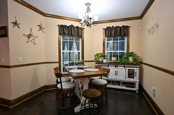 For a tour of the home see the virtual tour below. Features of the home are solid wood cabinets, granite countertops, tile and hardwood floors, screened in porch, fireplace in the living room, vaulted ceilings in the living room, and more. This brick home is a perfect place to raise a family and enjoy the farm life.