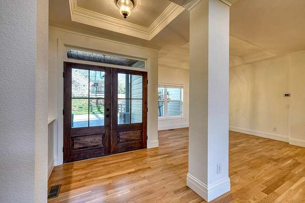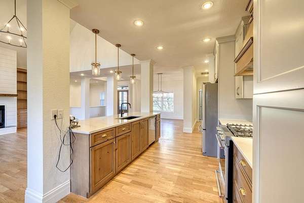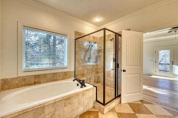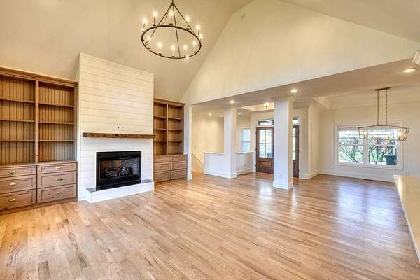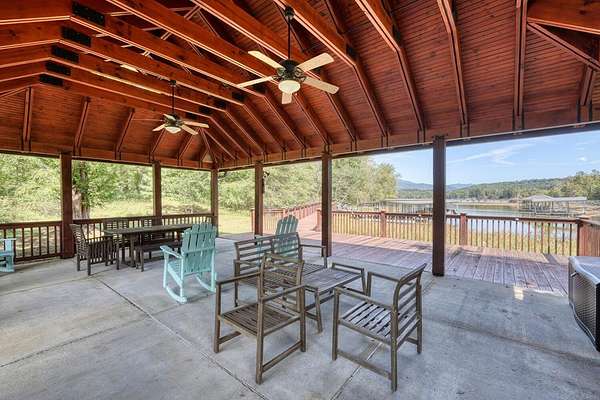 Welcome to this beautiful Mountain-Lake home in an upscale lake living gated community. Step inside to a warm and inviting interior featuring a spacious living room anchored by a gas FP and a stunning wall of windows that fills the home w/natural light while framing peaceful mountain & seasonal lake views. The newly remodeled kitchen has SS appliances, solid surface countertops and a generous pantry for ample storage. A separate dining room provides the perfect setting for gatherings w/family & friends. The main level includes 3 bedrooms and 2 full bathrooms, highlighted by a huge primary suite that serves as a private retreat. Enjoy a large walk-in closet double vanities, a walk-in tile shower, & a relaxing soaking tub. Step outside to the expansive covered porch complete with its own FP- ideal for year-round enjoyment while taking in the serene mountain surroundings. Upstairs, the finished bonus space above the oversized two-car garage offers flexibility for a home office, guest suite or recreation room. The full unfinished basement is stubbed for a 3rd BR and includes work bench. This exceptional property also includes a boat slip w/tie-on access to shared dock. The heated saltwater pool, less than 2 years old, is complimented by the covered pool pavilion with an outdoor FP. Includes a Generac whole-home generator for added peace of mind. Conveniently located close to Jack Rabbit campground area for more recreational activities.