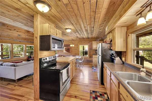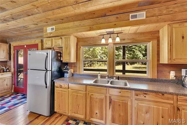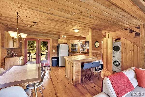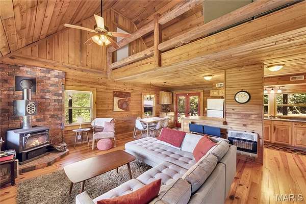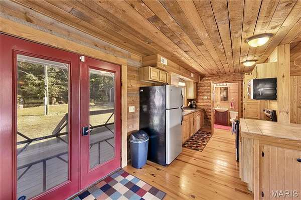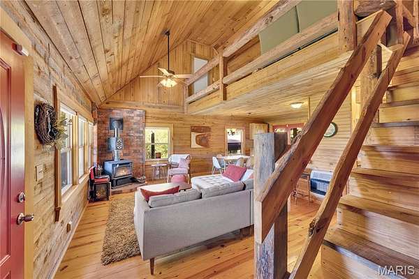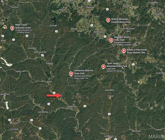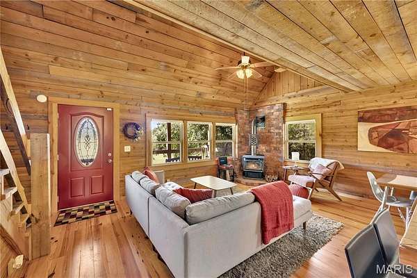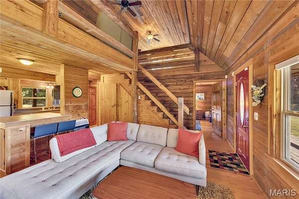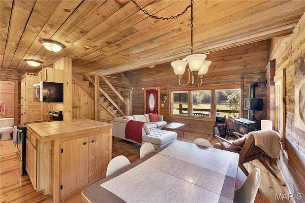 Discover the perfect blend of rustic charm and modern comfort with this beautiful 3-bedroom, 2.5-bath log home set on a stunning, private 15-acre retreat. Offering over 1,500 sq. ft. of thoughtfully designed living space, this property is ideal for anyone seeking peace, privacy, & nature. Relax & unwind on the front and back porches, where you'll enjoy sweeping views of your open pastures, private pond, and woods. Whether you dream of gardening, homesteading, or simply soaking in the tranquility, this property delivers it all. Inside you'll be wowed by the open layout with vaulted Great Room with cozy wood burning stove. The central kitchen ensures you're always part of the action, whether cooking or entertaining. Main floor features the primary bedroom suite with full bathroom and conveniently offers the laundry and an additional & half bath. Upstairs features a bedroom, loft/bedroom, & full bath - ideal for guests, family, or a flexible workspace. Outdoor lovers will appreciate walking through the wooded acreage & pasture, fishing & swimming in the pond, or exploring the year round running creek on the west side of the property. Located just minutes from Lesterville & the Black River - easy access to some of the best float trips, fishing, hiking, and scenic mountain vistas the region has to offer. This property is a quick drive to some of the best parks and forests in the state (Johnson's Shut-Ins, Elephant Rocks, Taum Sauk Mountain, etc.). Can be sold furnished! This property is ideal as a full-time home, weekend retreat, or short-term rental. Embrace the peace and beauty of country living!