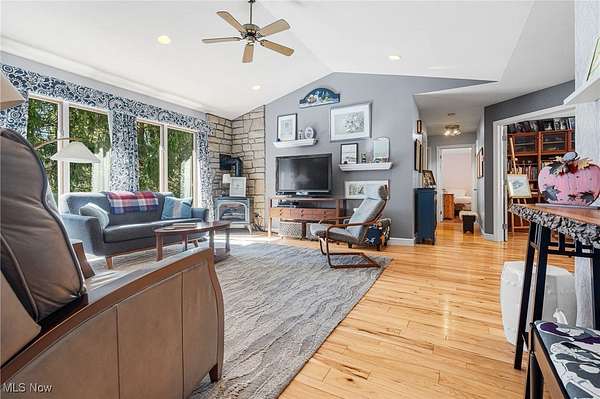 Custom built in 1994, by Jonas Miller, this 2000+ sq ft ranch home has an open concept with amenities galore. Stepping into the front door, you will find 3/4" hickory plank flooring thru out the main rooms. The living room has a propane fired heater and a vaulted ceiling. To the right you find a library, which could be a bedroom. The bedrooms have bamboo flooring. Master bedroom has dbl closets with extra built ins and a window seat with storage space. The master bath has a skylight giving the room more daylight . Along with the the guest bath, the master bath has soapstone counter, heated flooring and Schrock cabinetry. The kitchen has Schrock cherry cabinetry with soapstone counters, equipped with stainless dishwasher, refrigerator, microwave and an Induction stove and a peninsula with seating for 2. The formal dining area has a bay window, more natural light. The sunroom /family room has cedar ceilings and French doors leading the deck and back yard over looking the pond. The first floor laundry has more built in storage, a utility sink, small refrigerator, and a washer and dryer. Across from the laundry is 5x8 pantry. Lower level has a workshop area, a bath ,a utility area, a room that could be a bedroom, and a craft room that has been plumbed for a bath . This room has the 2 doors to walk out to a small patio looking over the pond area. Canned lighting thru out the first floor. All Anderson windows with screens. Heat pump with propane back up, water softener, rented water heater ($21.24). The 2 car garage has a drive thru to the back yard. There is an 8x10 storage shed for pond and lawn equipment. This beautifully landscaped lot has lots of plenty of trees and perennials. This home has a soft color palette, making the natural light appear much brighter. Don't miss out on this one of a kind home! Seller is giving a 1 yr HOME WARRANTY. Property taxes reflect homestead tax credit of $469