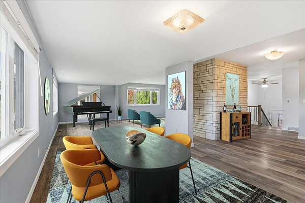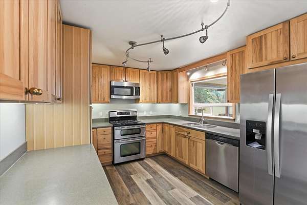 35 acres for new price! Potential Multi-generational Living. Or open space to build a Horse farm. Start small while building your parents or children's houses. 35 acres is parceled into one 15-acre w/house, and two 10-acre lots. Power running through one parcel. Modern updates; LPV flooring, solid Hickory kitchen cabinets, new roof in 2017, vinyl siding, vinyl windows, 2-car attached garage, and 30x48 shop. The living, dining rm, and enclosed deck with lots of windows to enjoy the incredible views. Beautiful country living while still only 20 minutes North of the Y. The daylight basement has both entrance into the garage and outside entrance opens onto paved covered patio. Potential setup for multi-generational. Apple, Cherry, and Plum trees, garden, and greenhouse. Covered carport, 35' lean-to. Home is heated w/ geothermal heating (efficient). 350 gal Propane tank onsite. Too many pluses to list. Price increased due to acreage increasing from 15 to 35 acres.